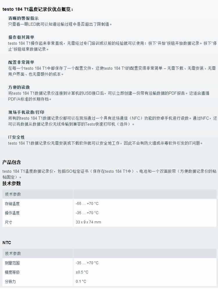 德国testo 184食品药品运输温湿度记录仪器184H1/T1/T2/T3/T4