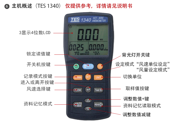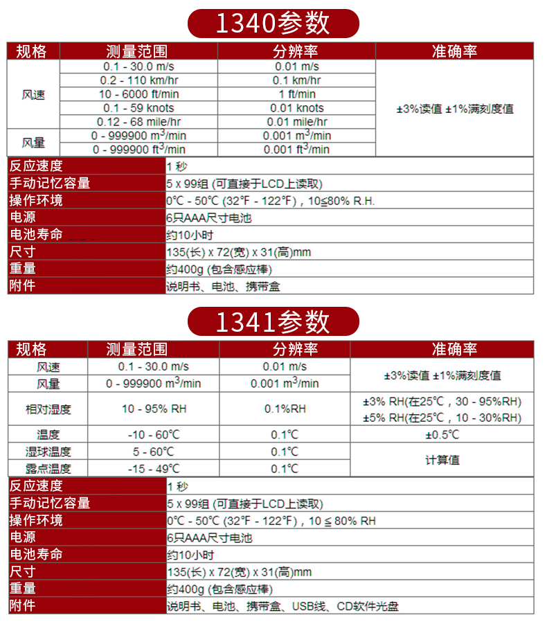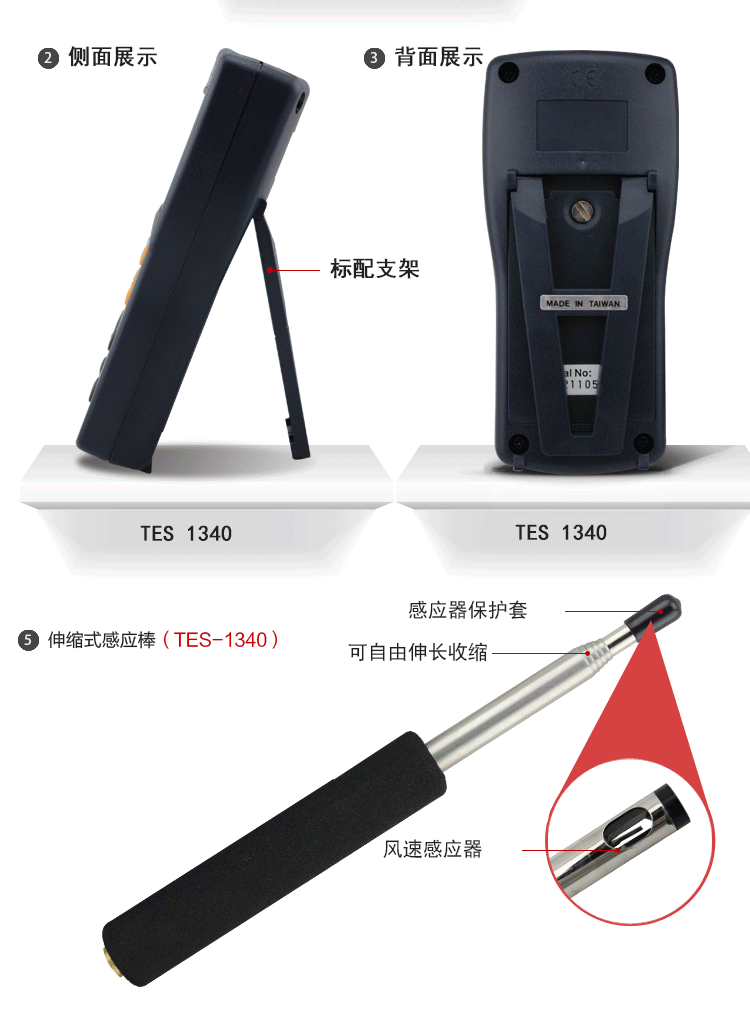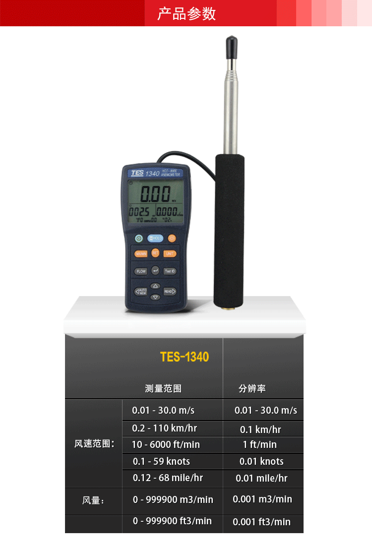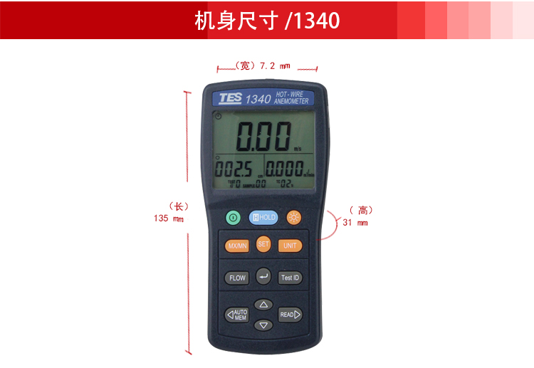 泰仕TES-1340热敏式风速仪测风仪风速计热线式风速测量仪TES1341