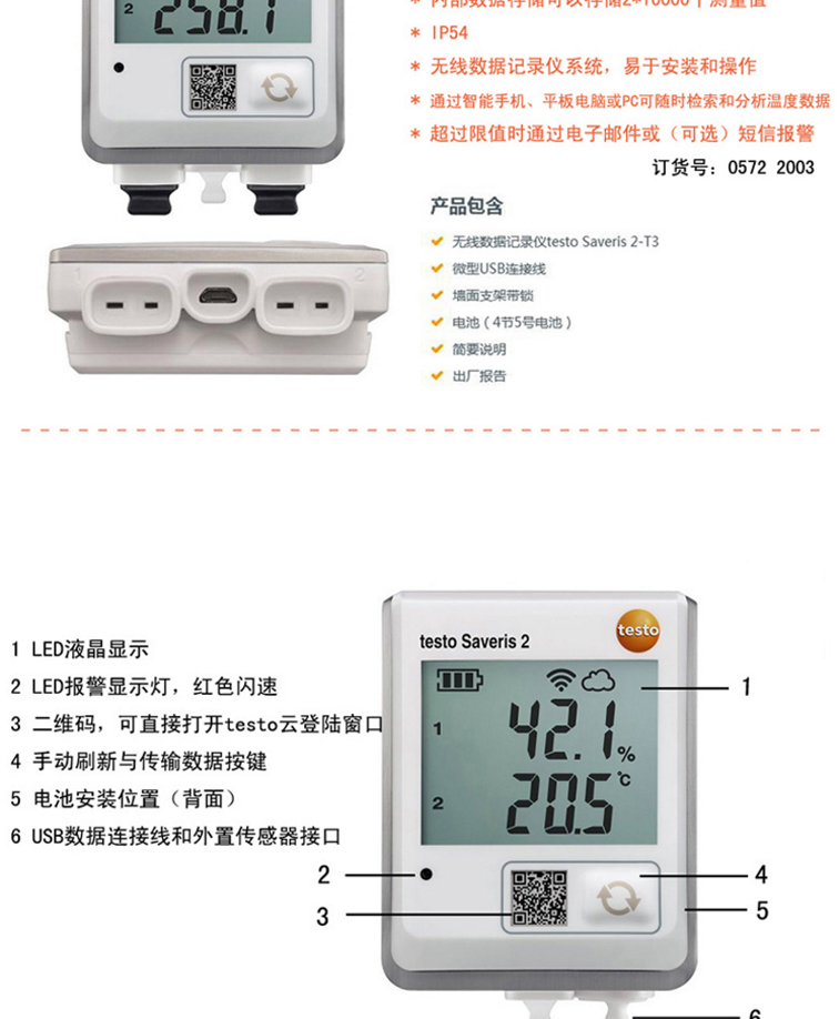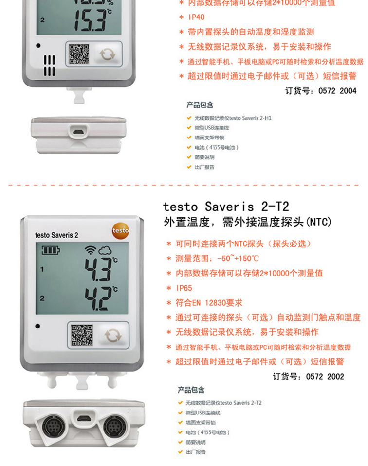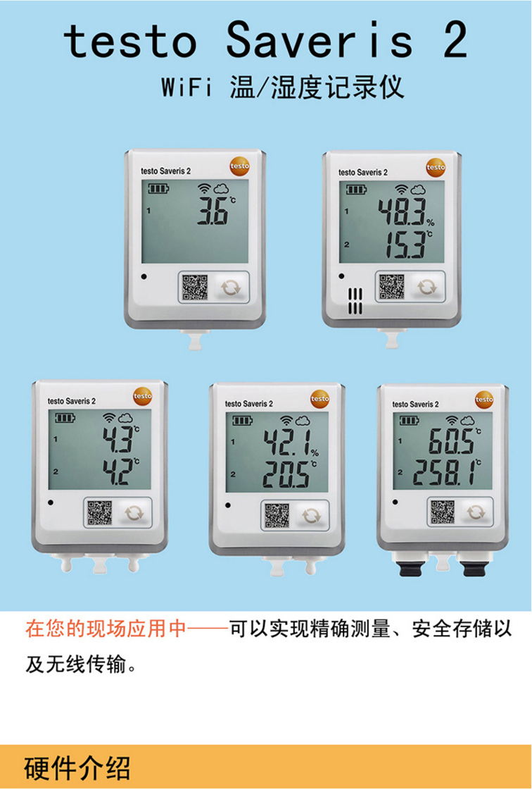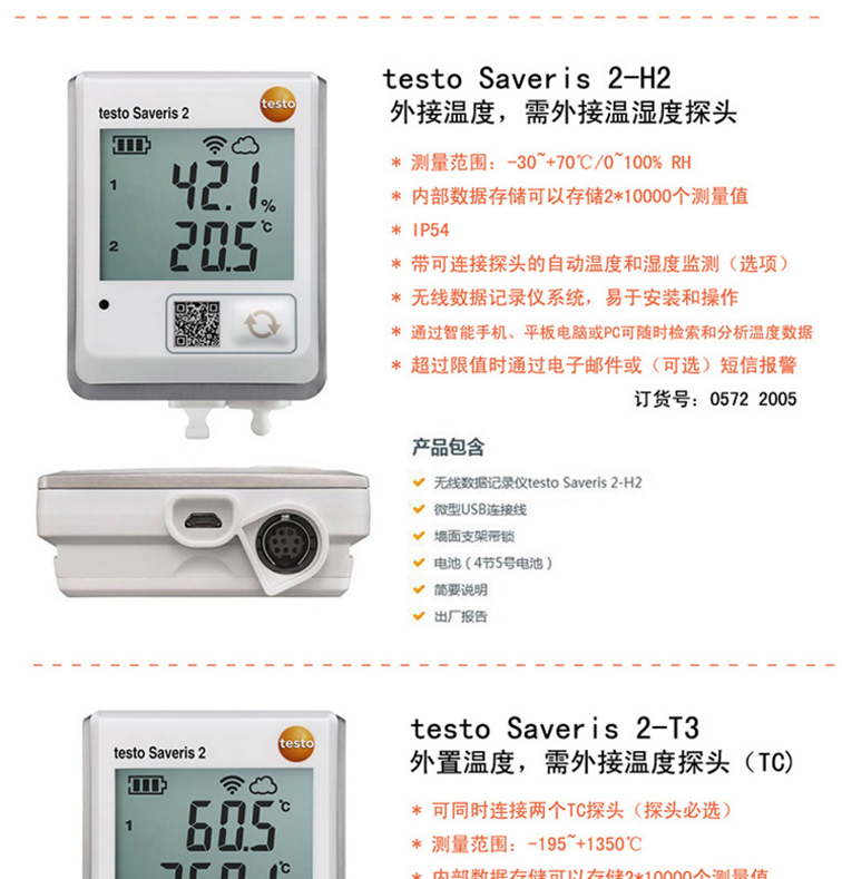 德图testo Saveris 2-T1 2-T2 2-T3 2-H1 H2 WiFi 温/湿度记录仪