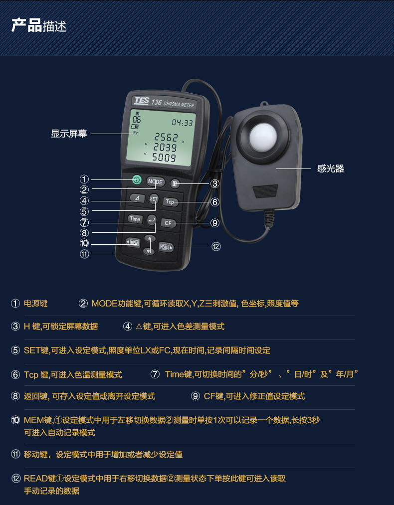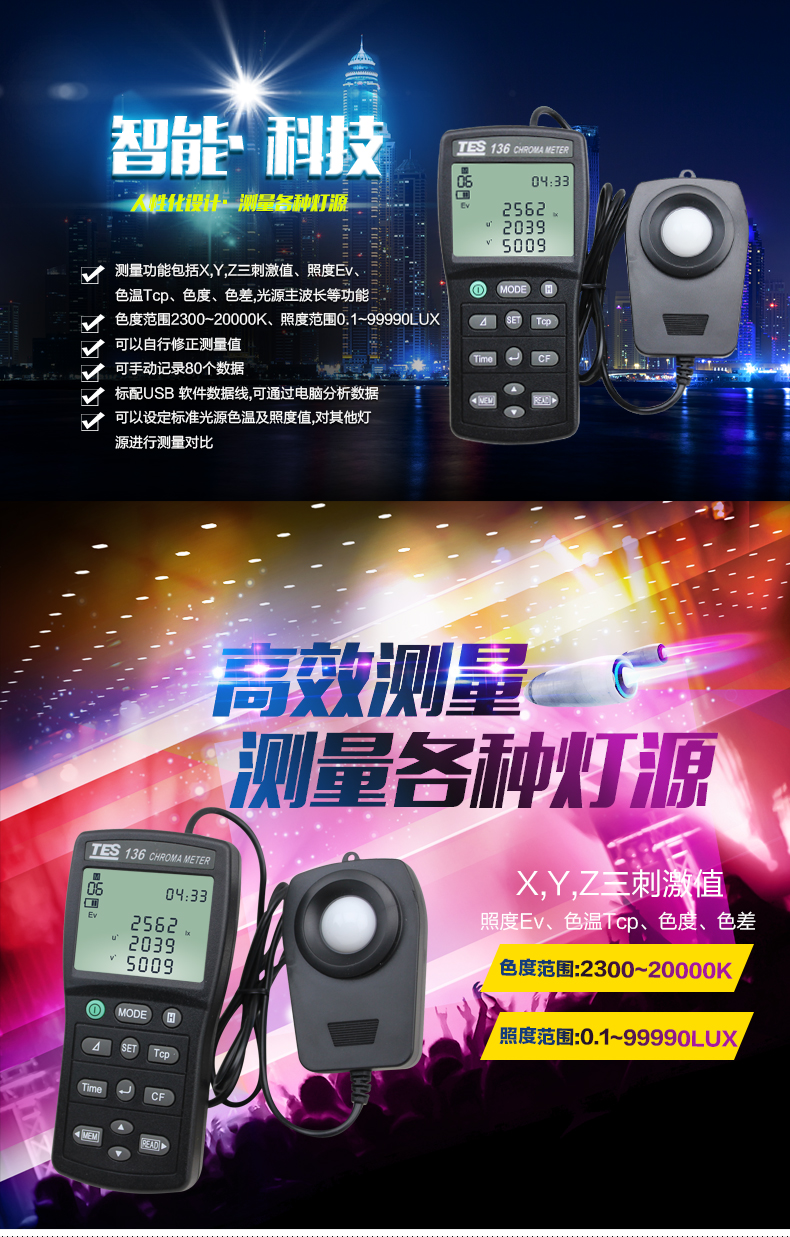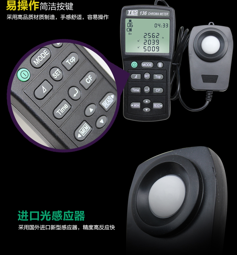 台湾泰仕TES136色温测试仪 色温仪 照度计 测光仪 高精度 照度仪