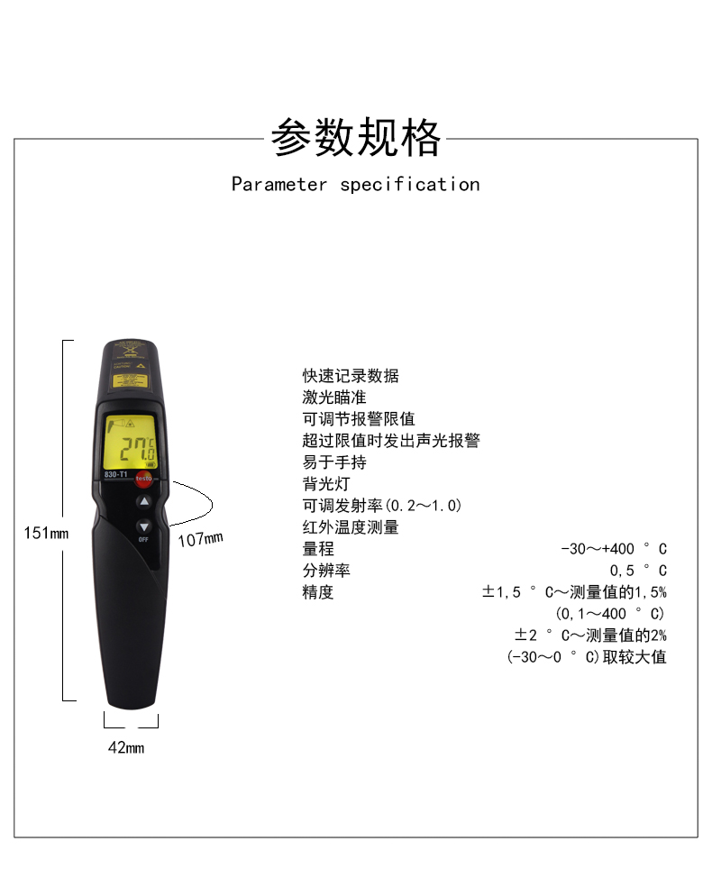 德图testo830-t1红外测温仪 快速高精度测温枪 工业红外线测温仪
