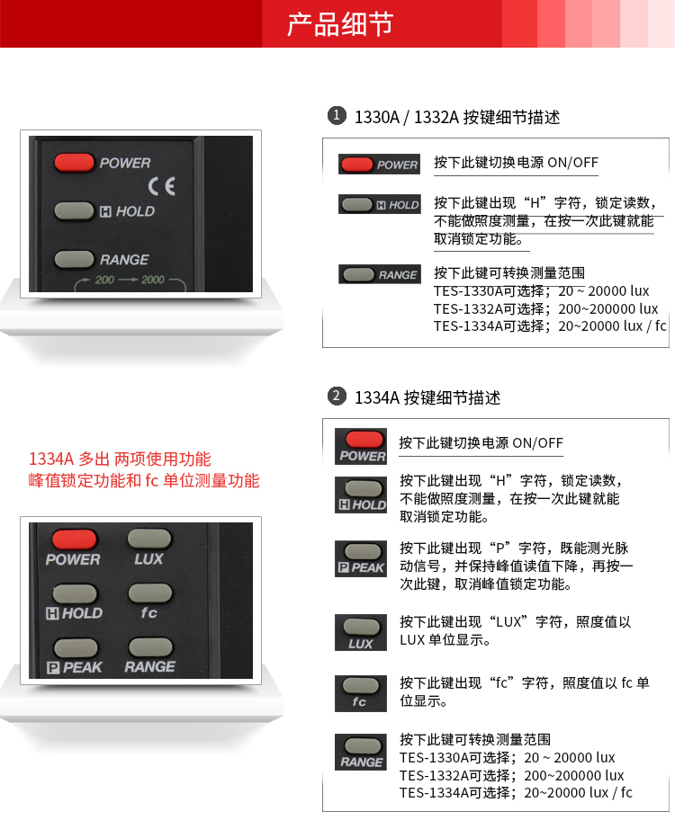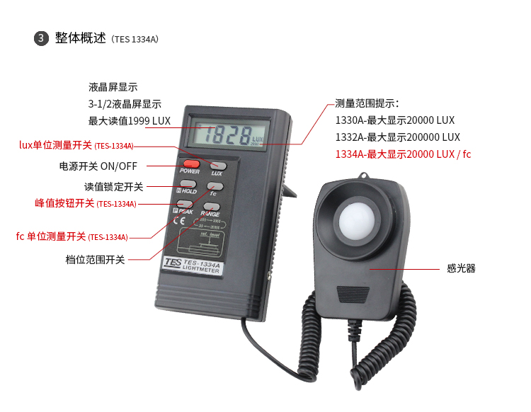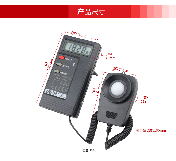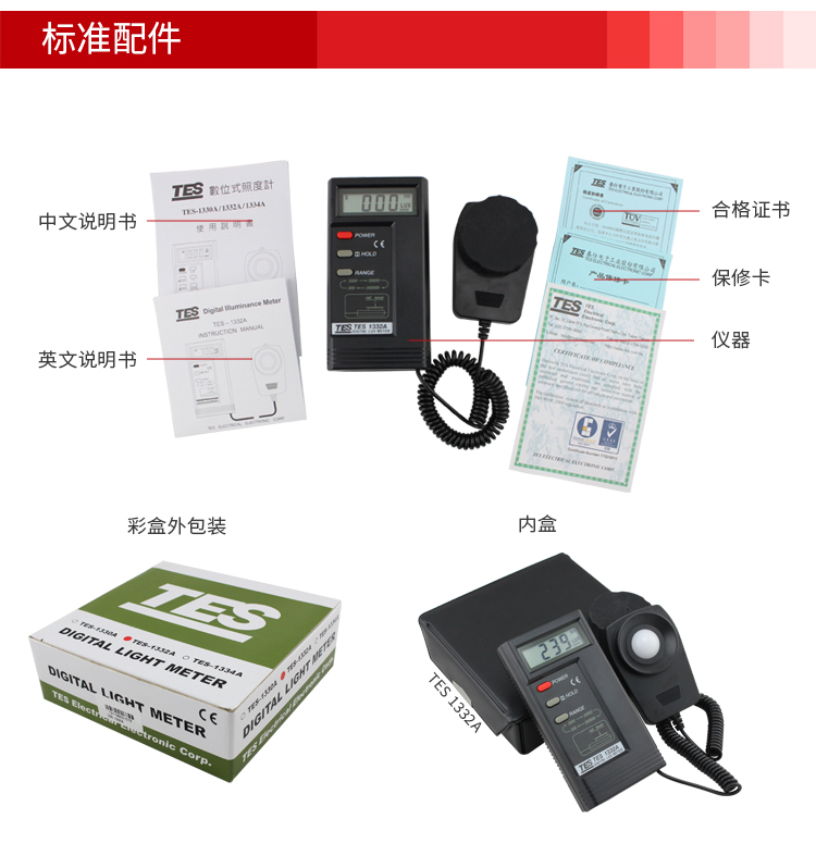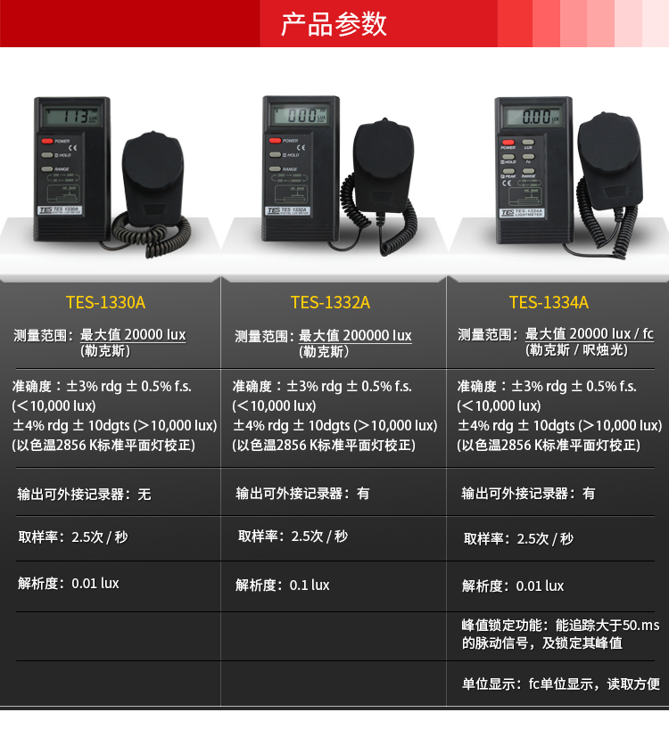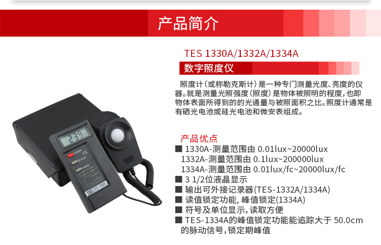 台湾泰仕TES1330A照度计测光仪光度计高精度亮度计光强度计测试仪