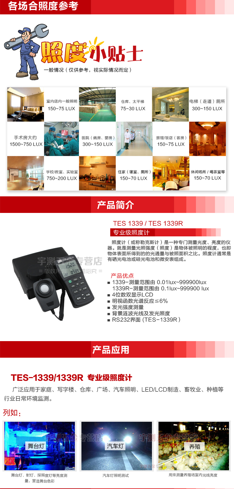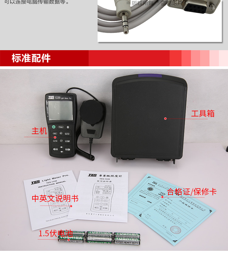 台湾泰仕TES1339照度计光度计高精度测光仪汽车大灯光强度测试仪