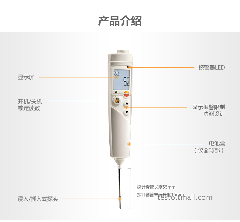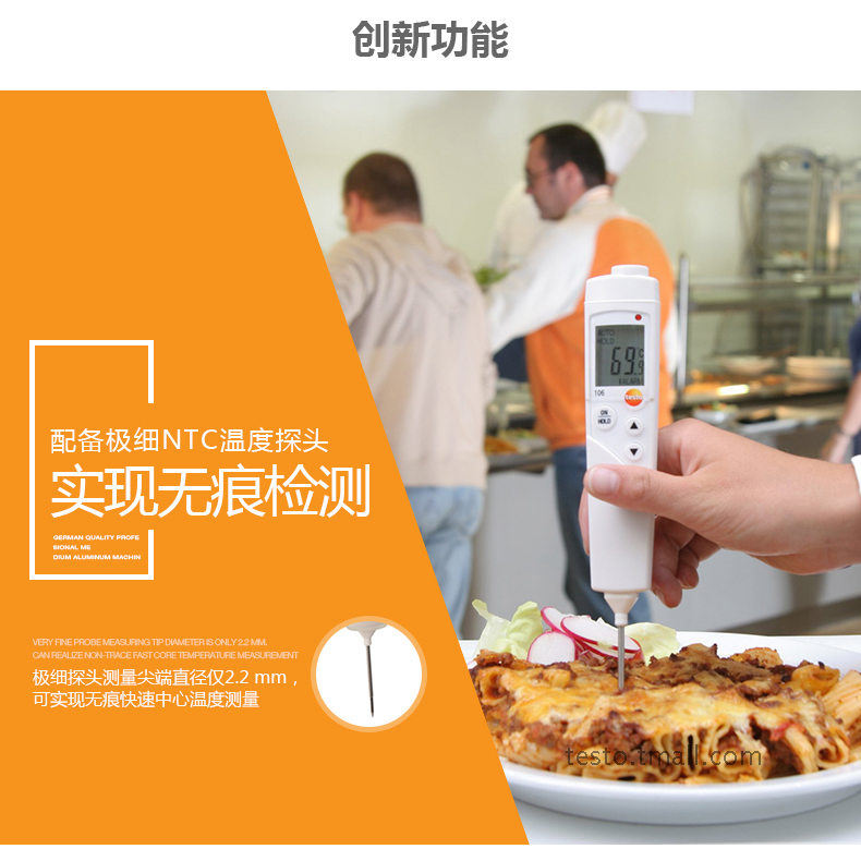 德图 testo 106 迷你型插入式食品温度计防水防油测温仪表包邮