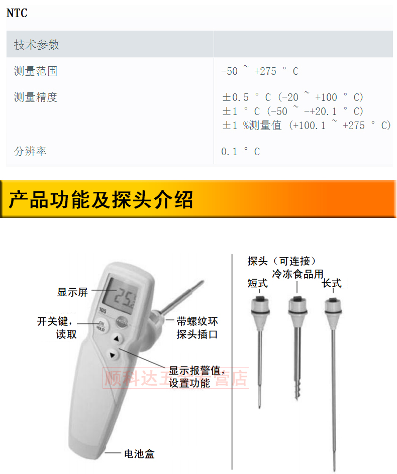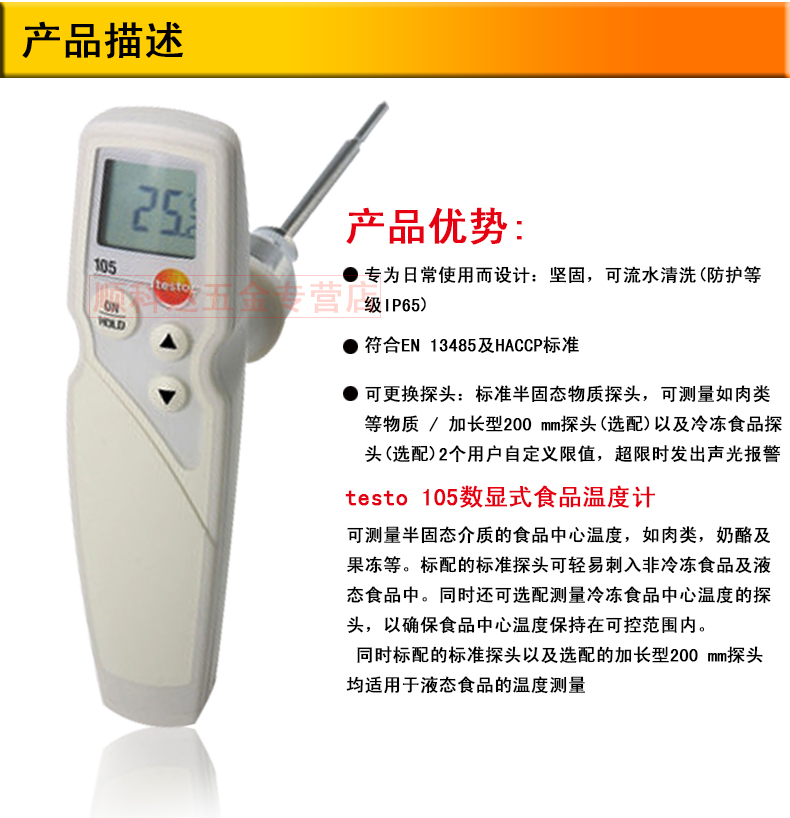 德图 testo 105冷冻食品温度计防水型探针测温仪冷冻肉中心温度计