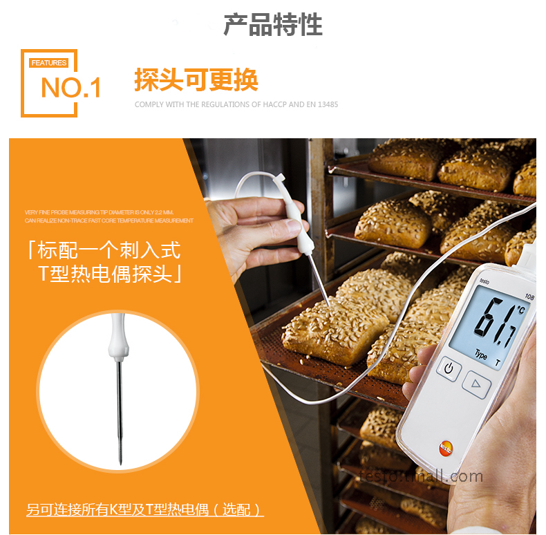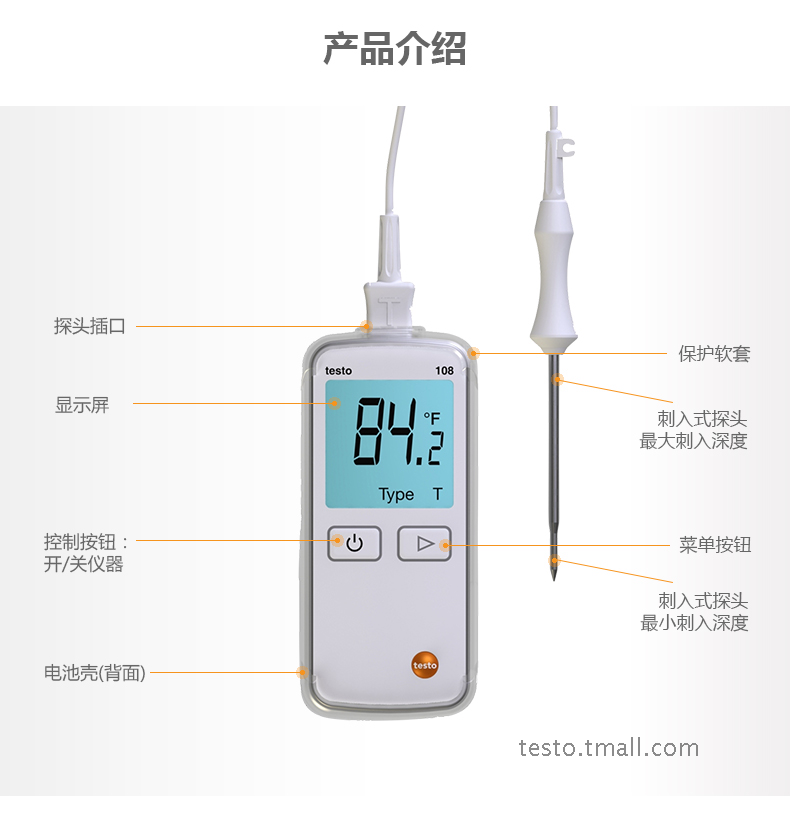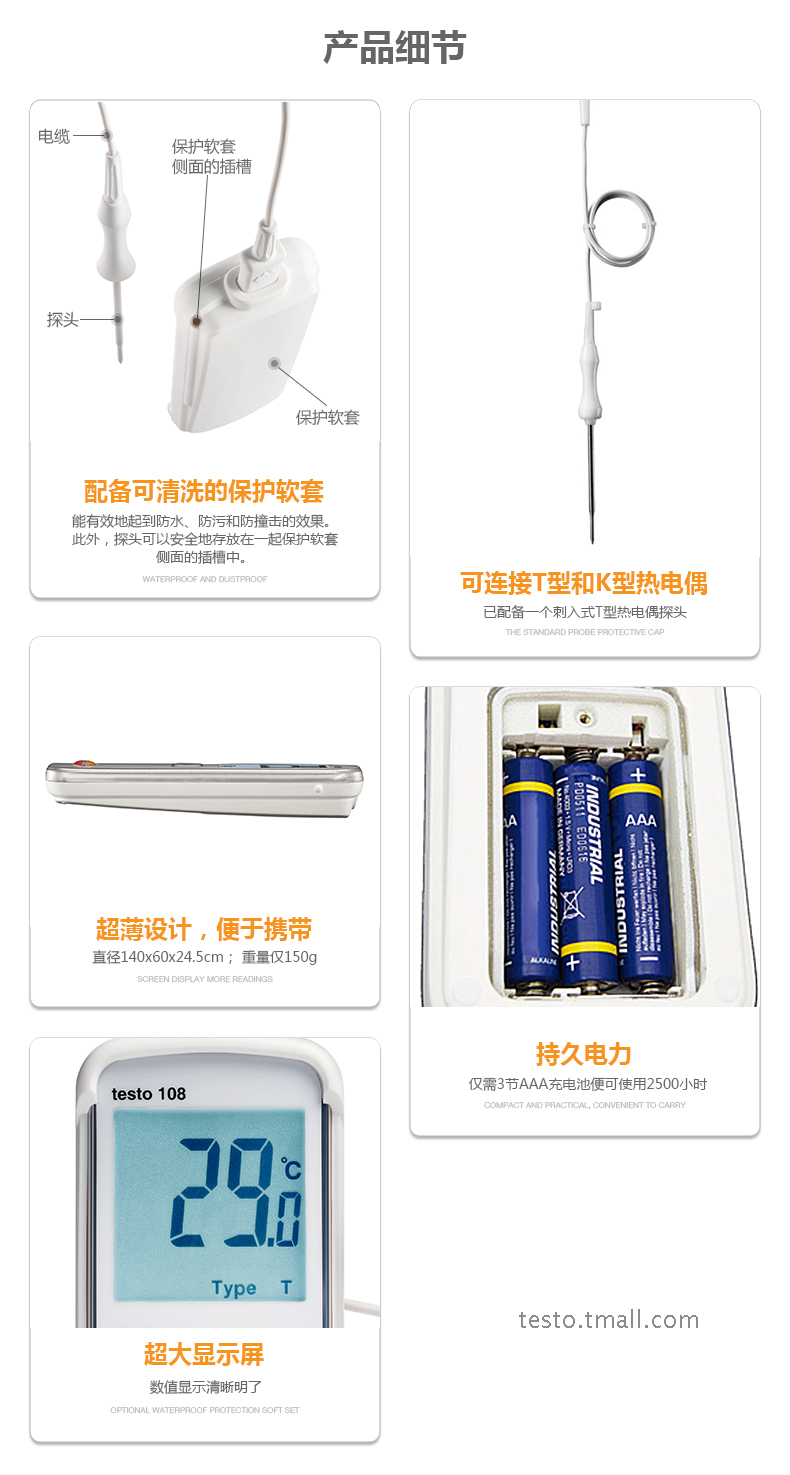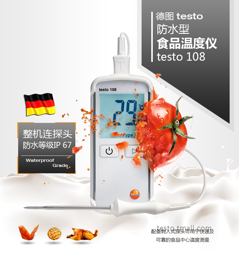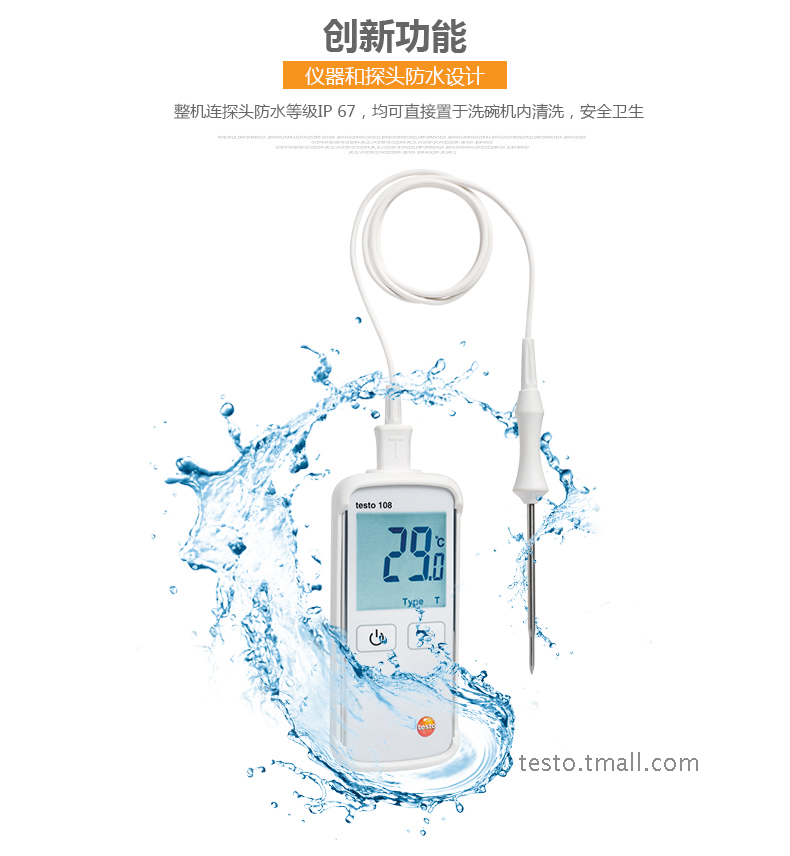 德国德图TESTO 108高精度温度表食品中心温度计防水探针温度计