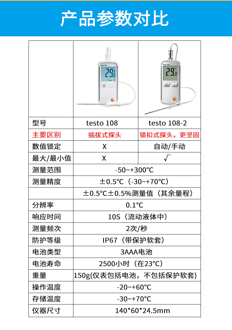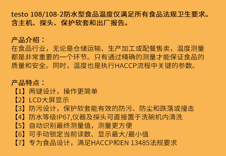 德图testo 108-2食品温度计防水型食品中心温度计食物探针测温仪