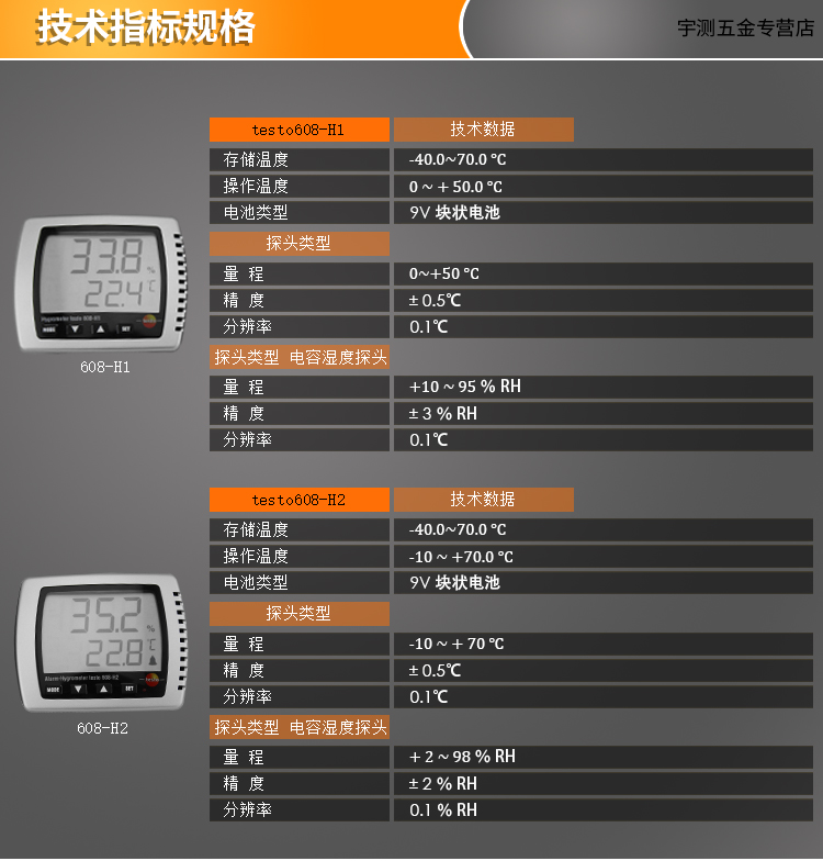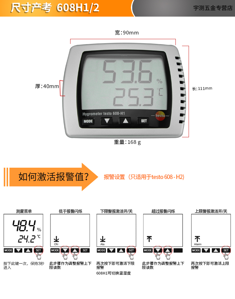 德国德图TESTO608-H1数显温湿度计家用高精度温湿度计工业湿度仪