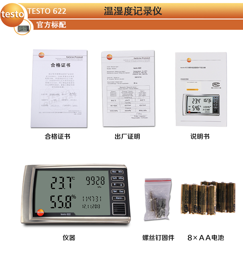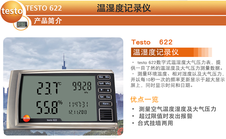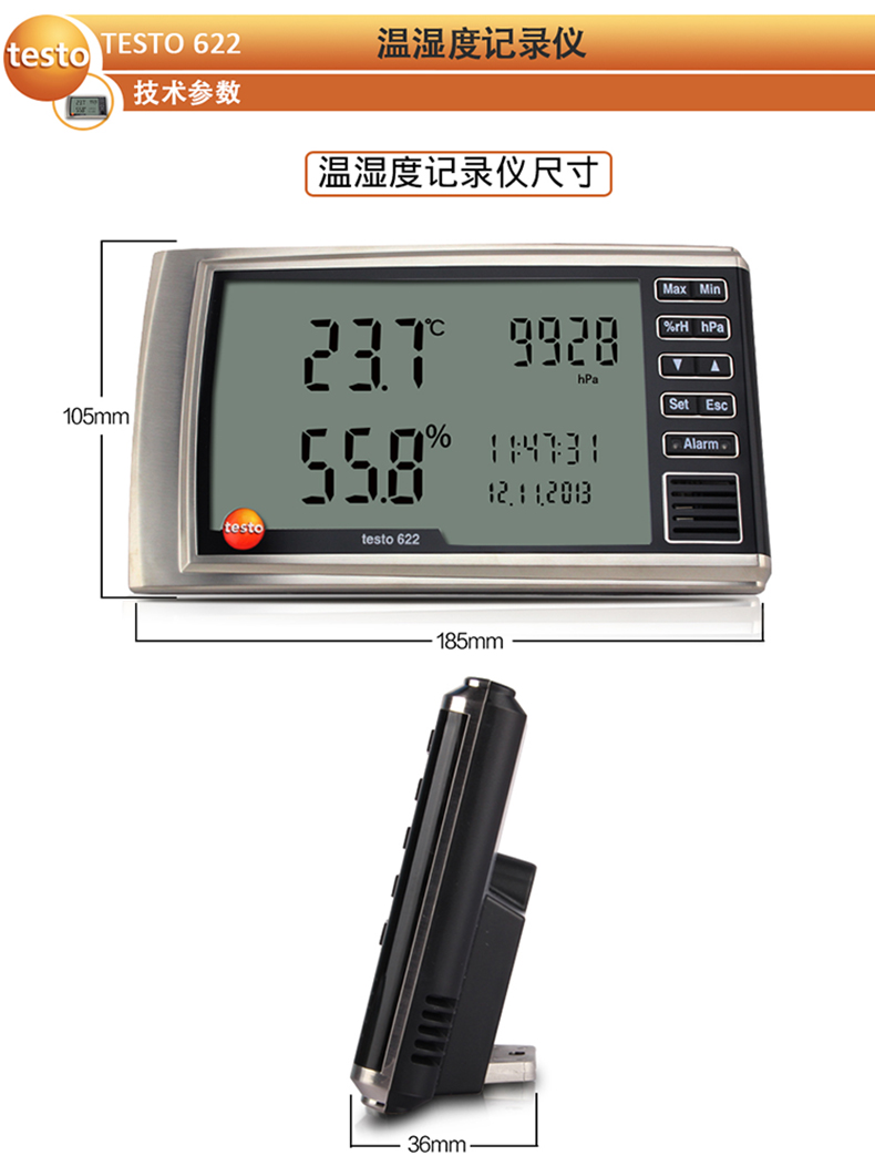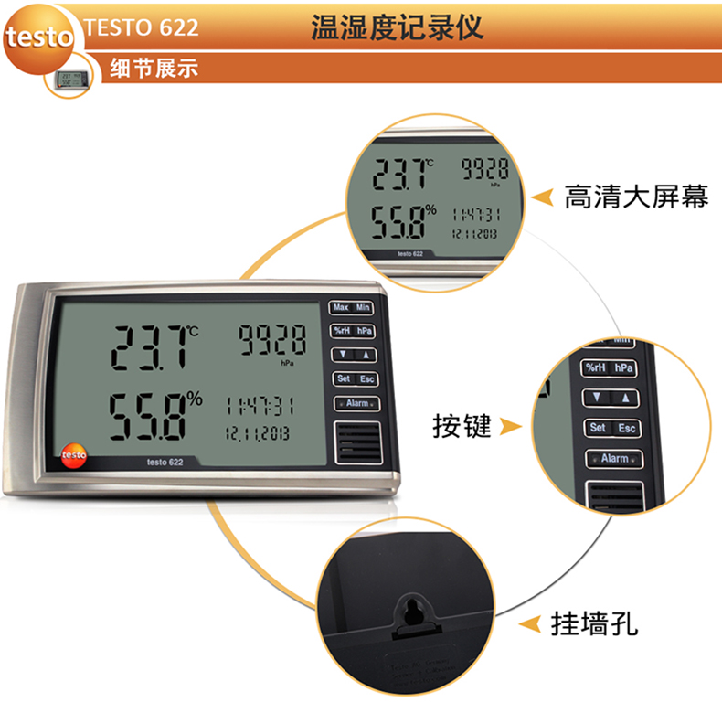 德图TESTO622大屏幕温湿度计高精度大气压力表多功能温湿度仪工业