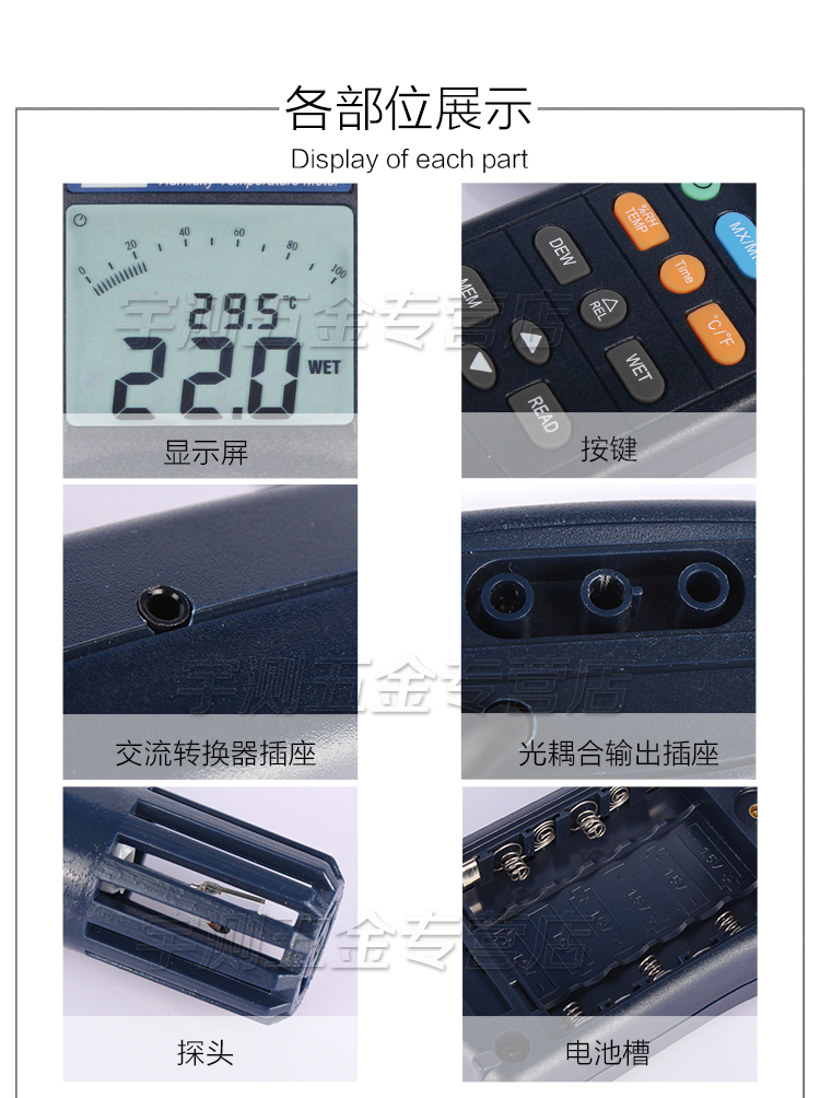 双显示LCD含模拟刻度指示。 (同时显示温度、湿度)