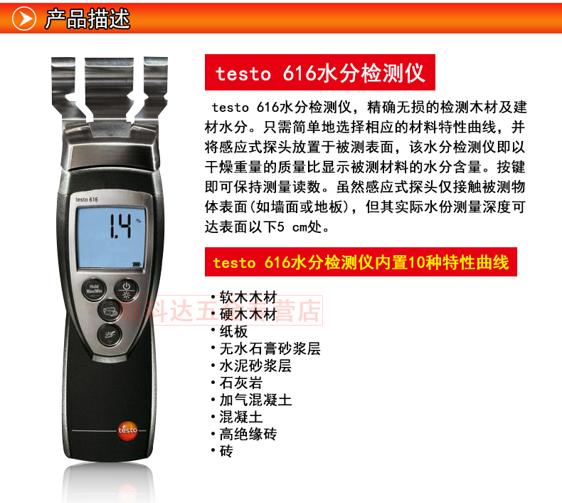 德图 testo 616木材水份测量仪 感应式建筑材料水分测试仪检测仪