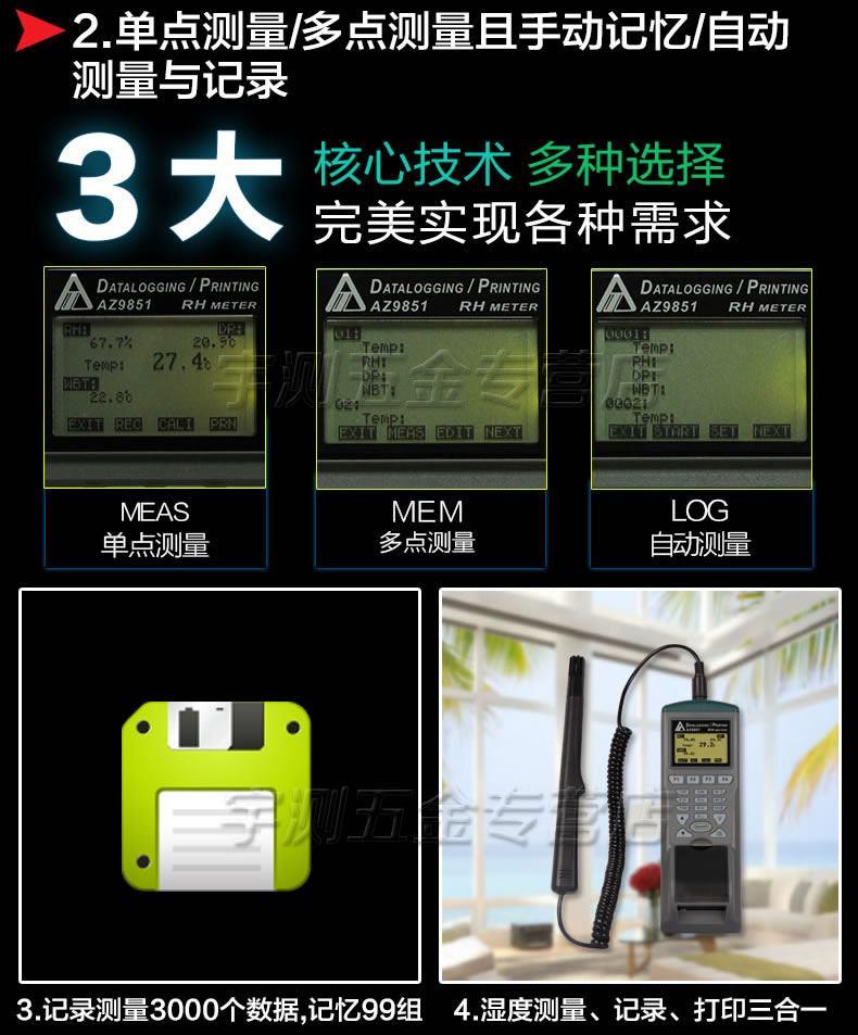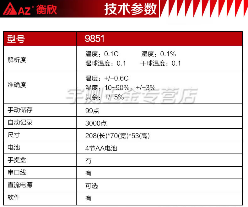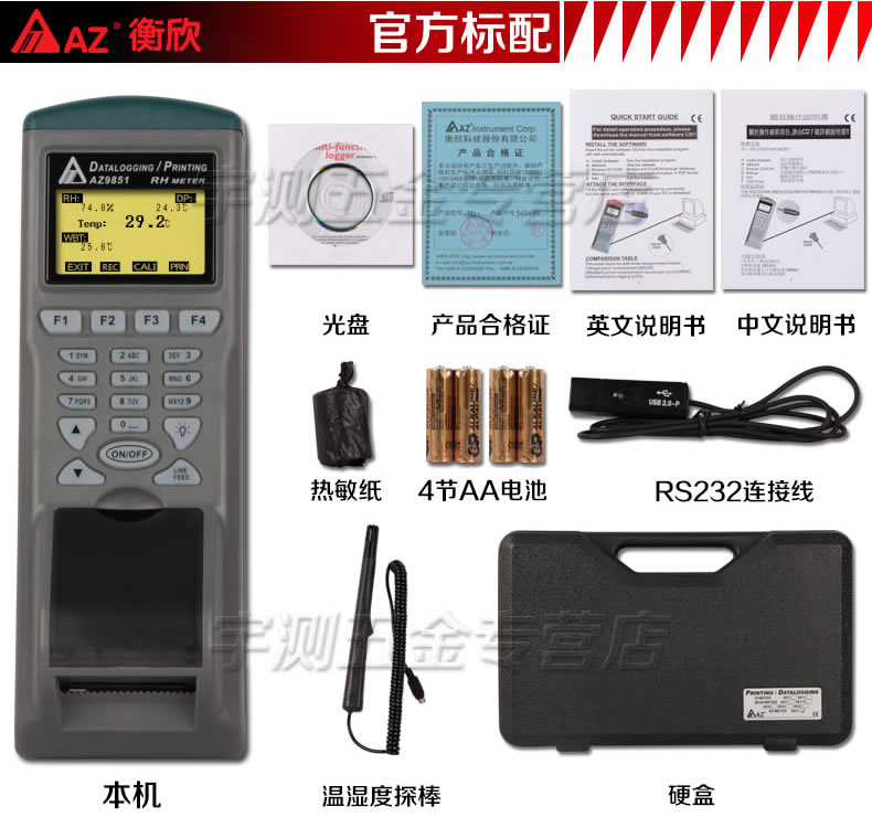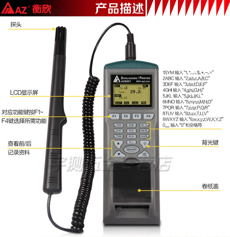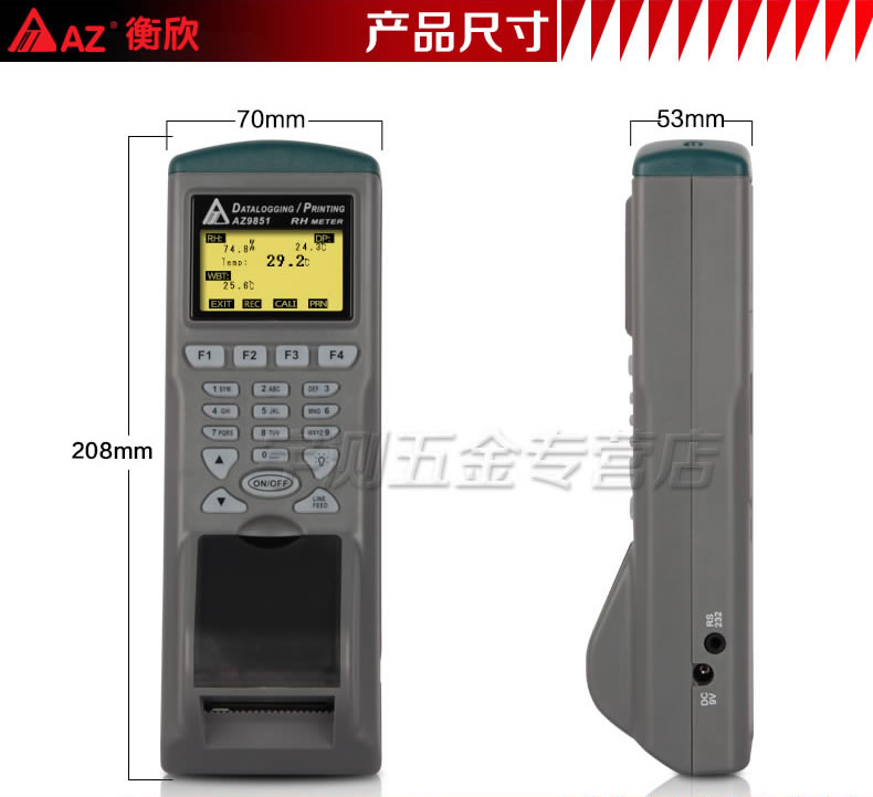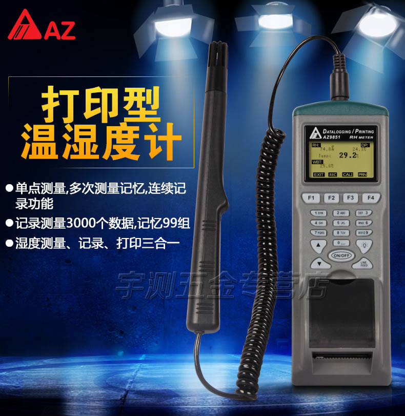 台湾衡欣AZ9851打印式温湿度计 温湿度记录仪 温湿度计 高精度