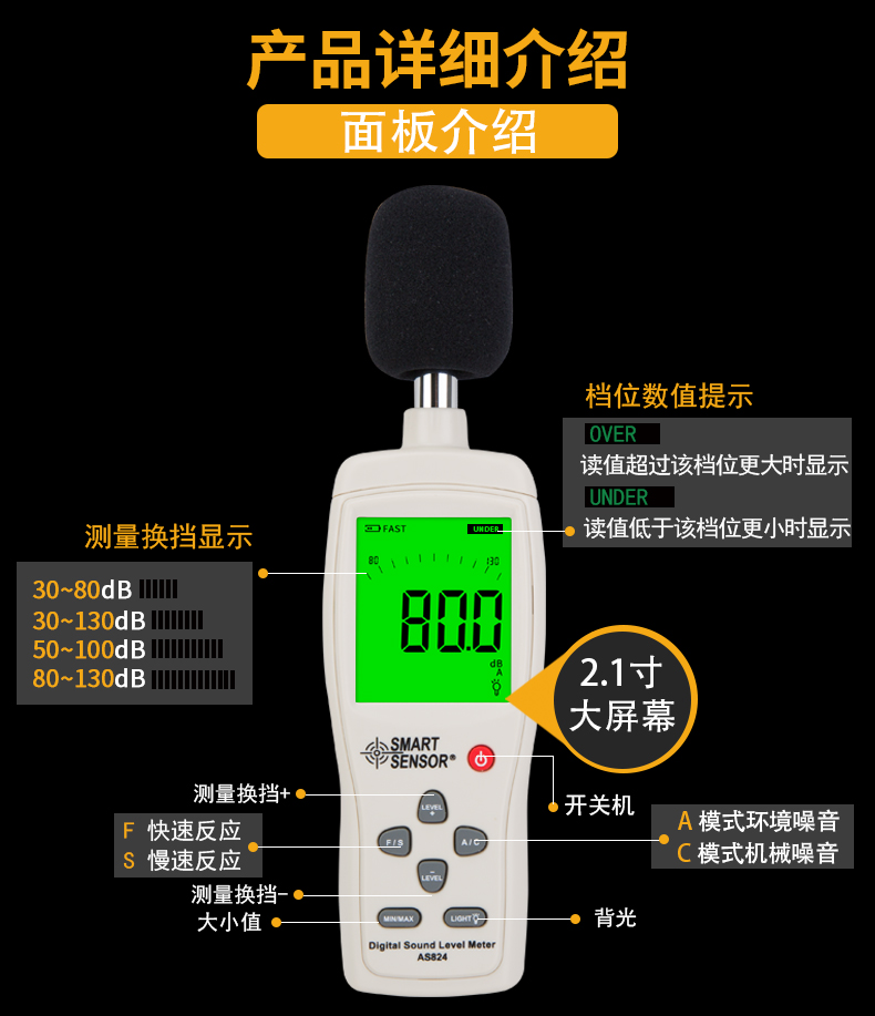 希玛 噪音仪噪音测试仪噪声仪分贝仪高精度噪音计分贝仪声级计