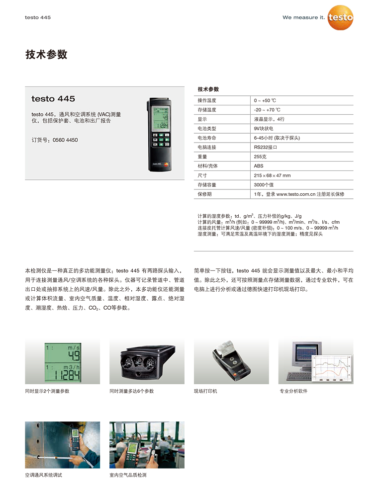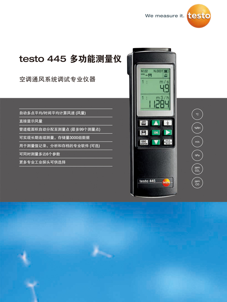 德图TESTO445工业多功能测量仪建筑工程通风空调系统检测二氧化碳
