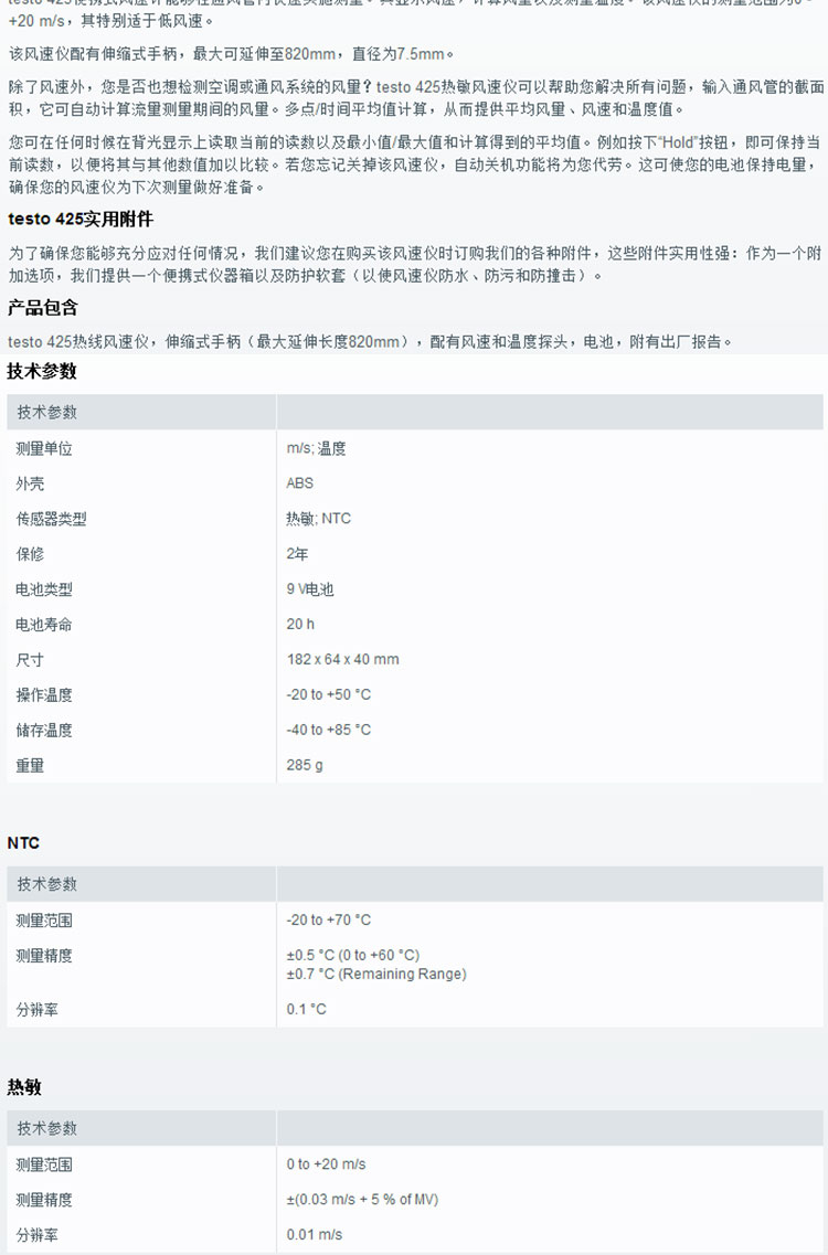 德图testo 425热敏风速仪 风速风量检测 原装货号
