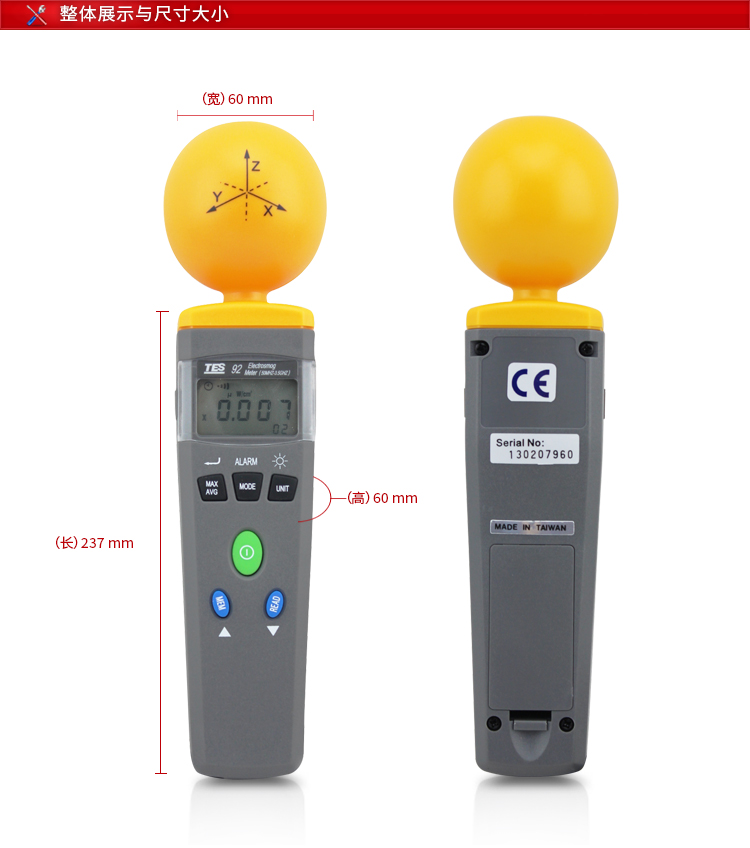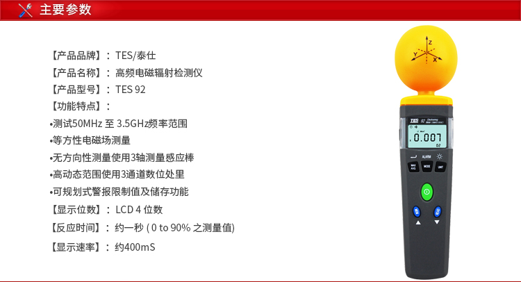 台湾泰仕TES92高频辐射测试仪家用手机辐射测试仪电磁辐射检测仪