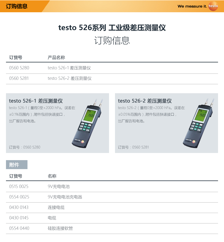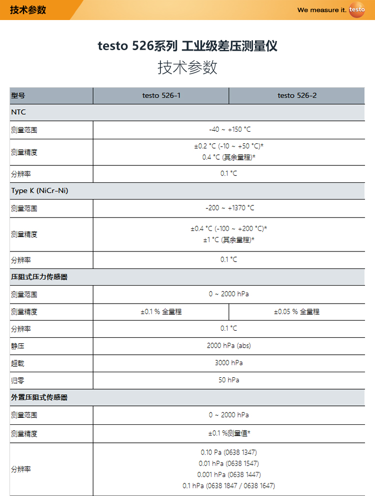 testo/526-1/526-2工业级差压仪 德图原装进口便携式精密型压差计