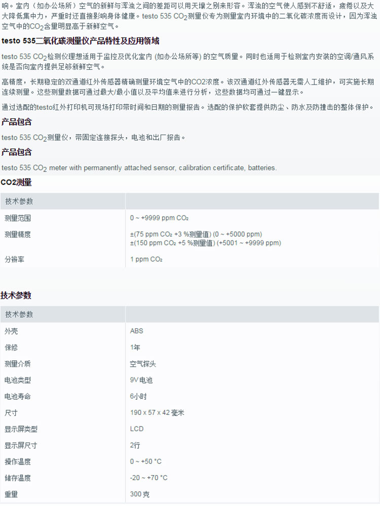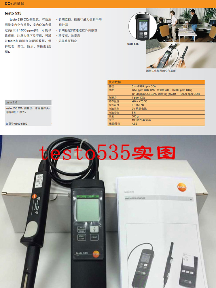 德图TESTO535二氧化碳检测仪CO2测量仪内置探头德国货号