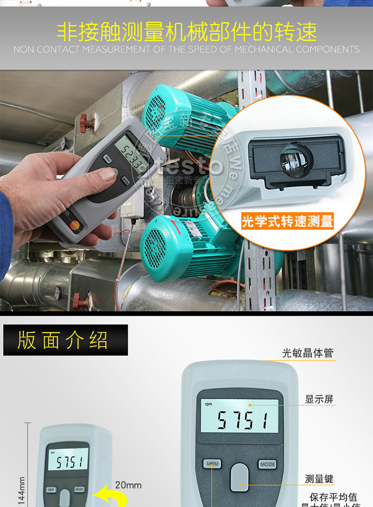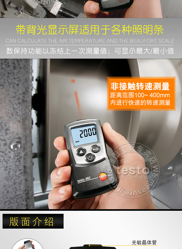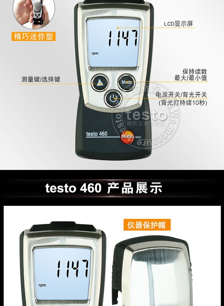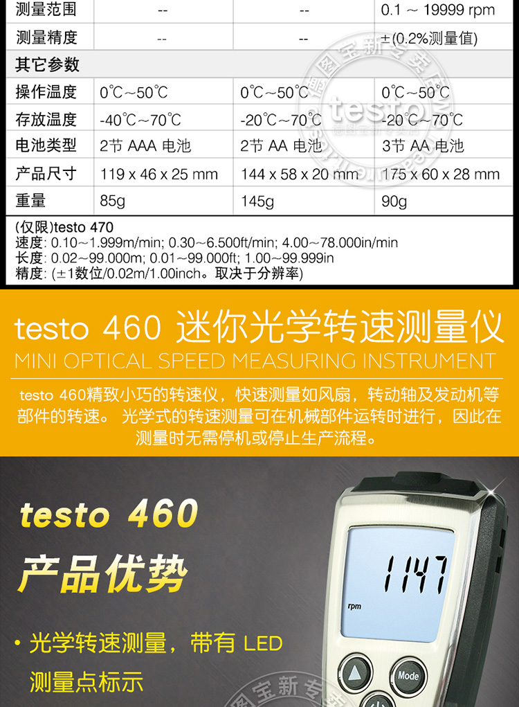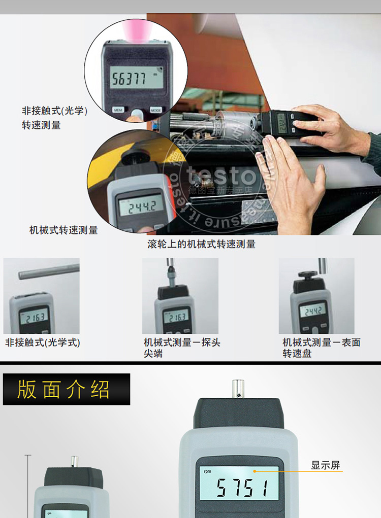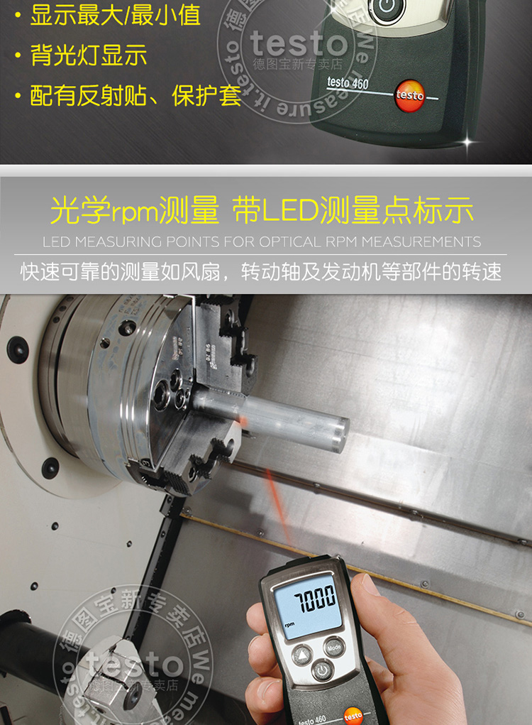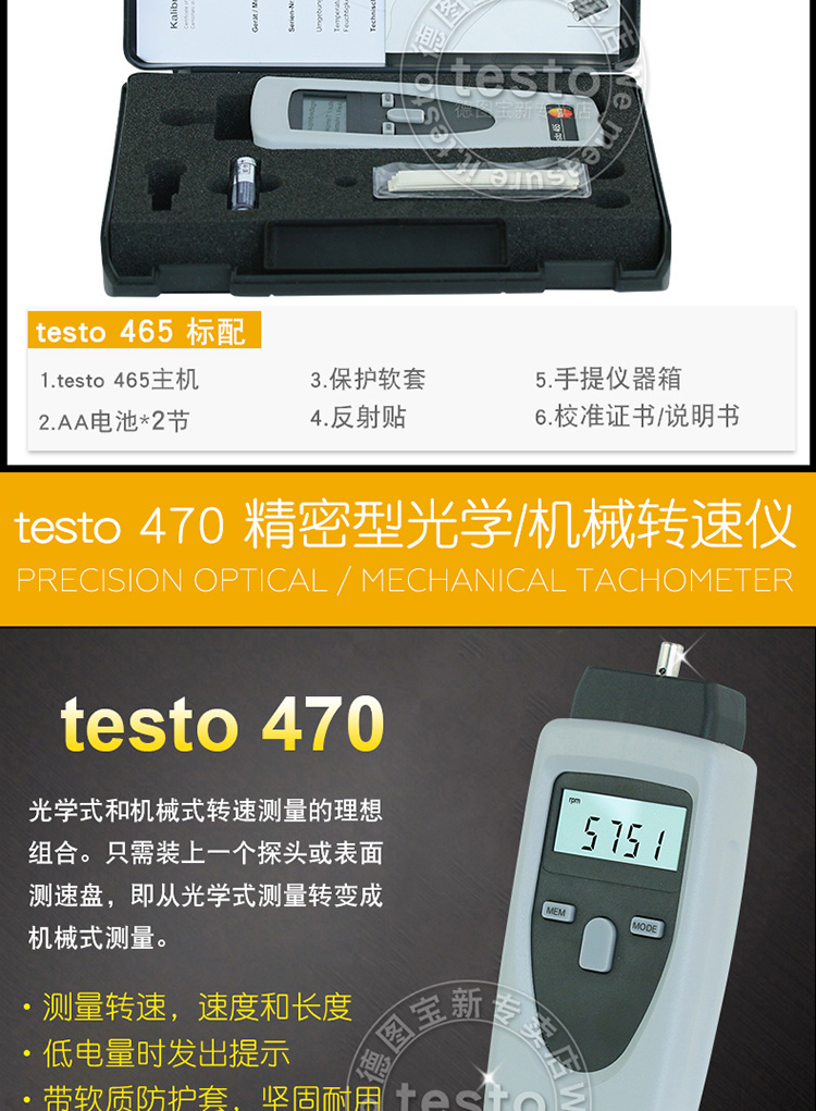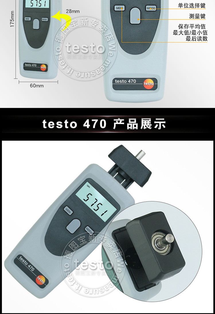 德国德图testo465/470智能数显光电光学转速测量仪表汽车发动机数字