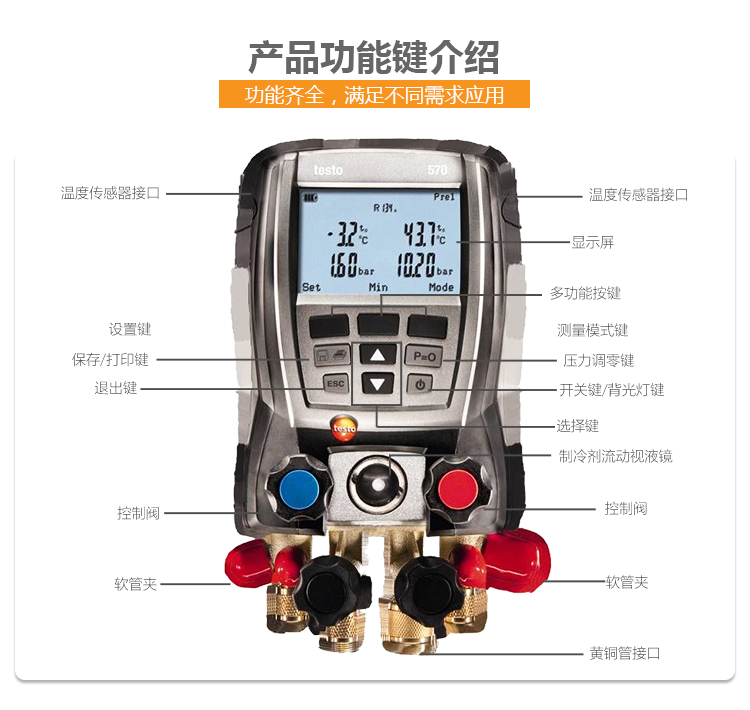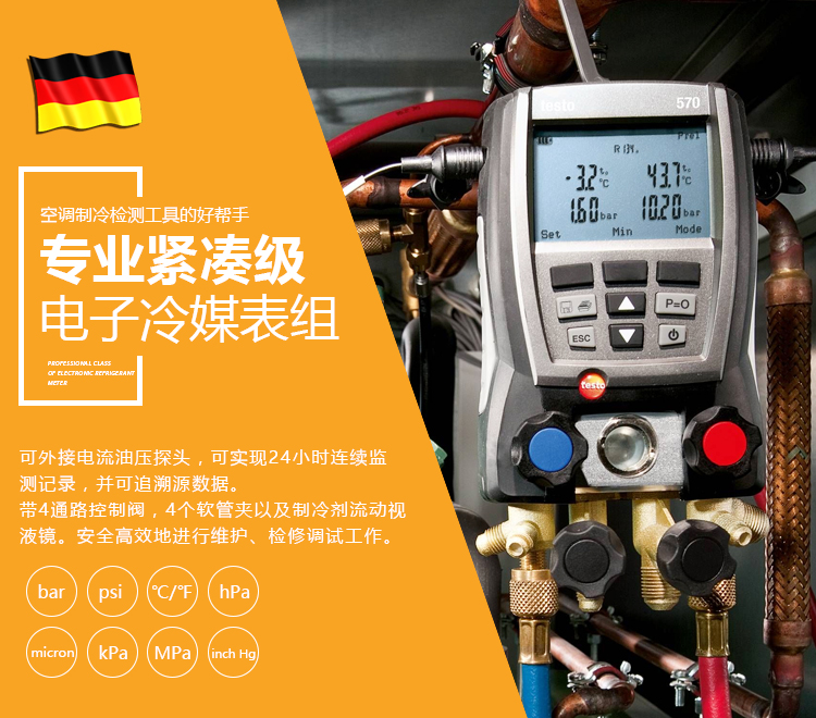 德图testo570-2电子歧管仪可测量压力温度电流真空度气密性