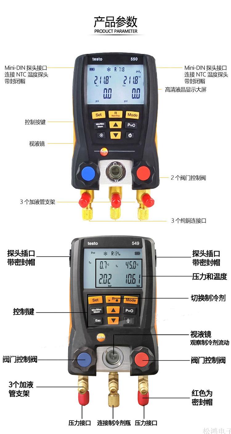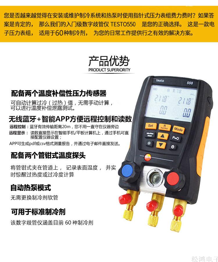 德国testo550冷媒雪种压力表汽车空调加氟表双表阀数字充氟表