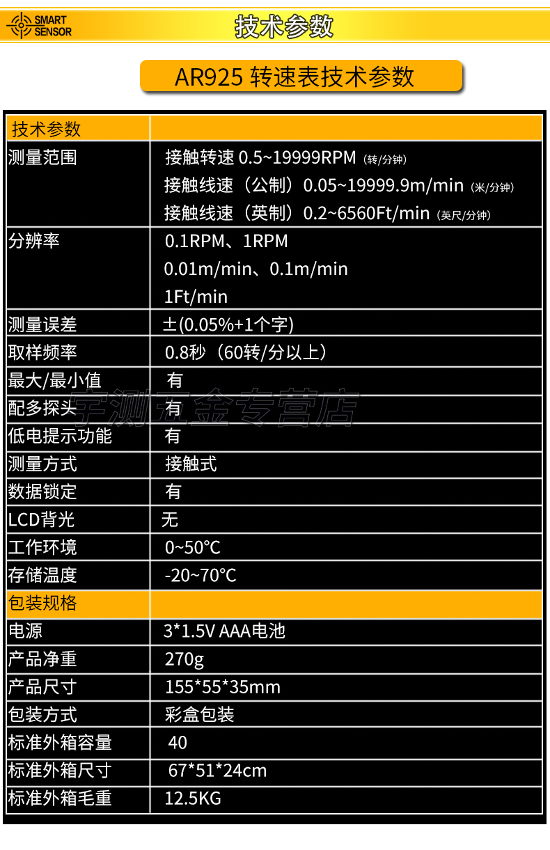 希玛AR925转速计 接触式数显转速表 转速测量仪 转速测速仪