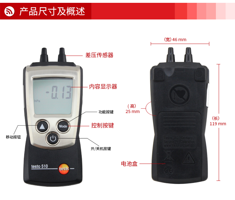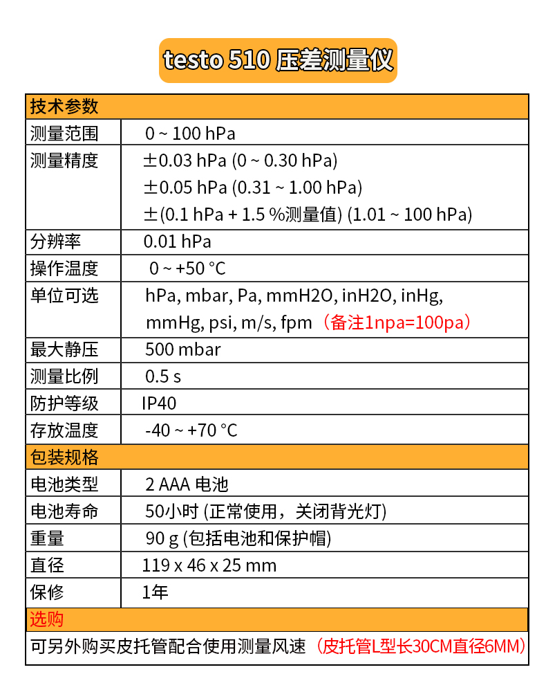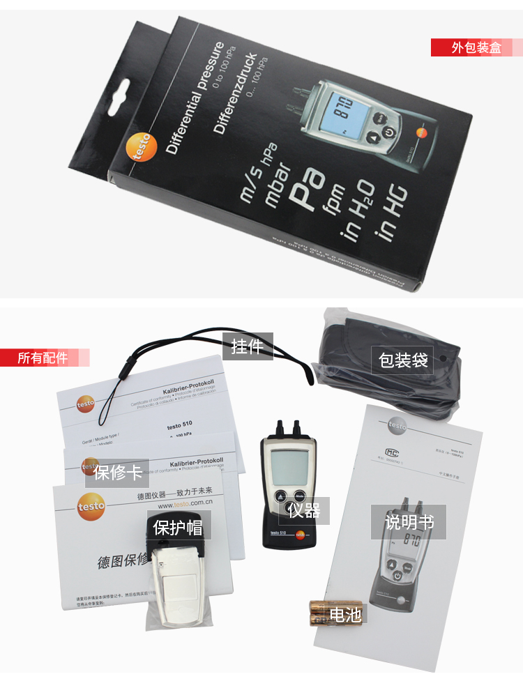 德国德图TESTO 510微压差表数显微压差计差压计高精度压差仪手持