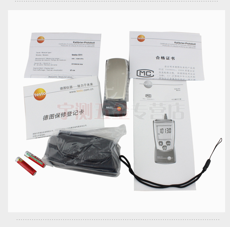 testo 511:绝压测量仪包括保护帽,电池和出厂报告。