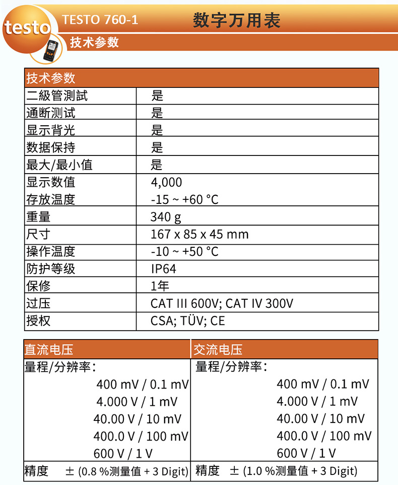 德国德图TESTO760-1数字万用表自动量程万用表 数字 高精度表