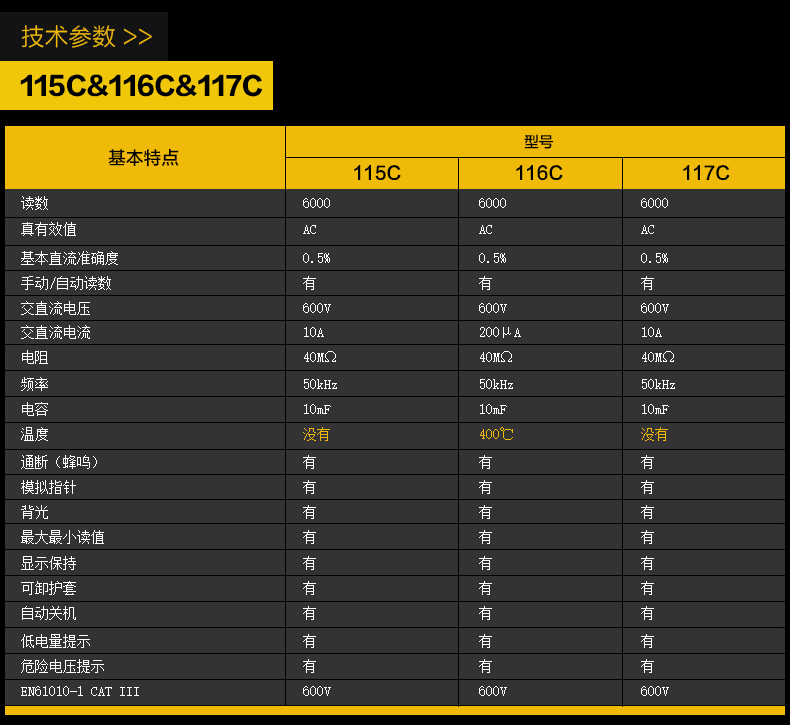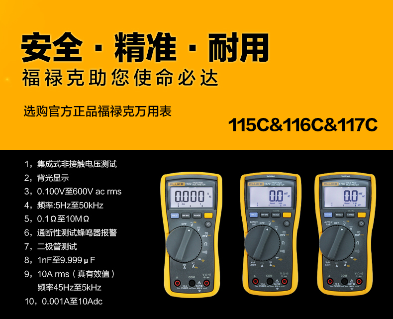 福禄克万用表FLUKE115C真有效值万用表F115C万用表数字 表