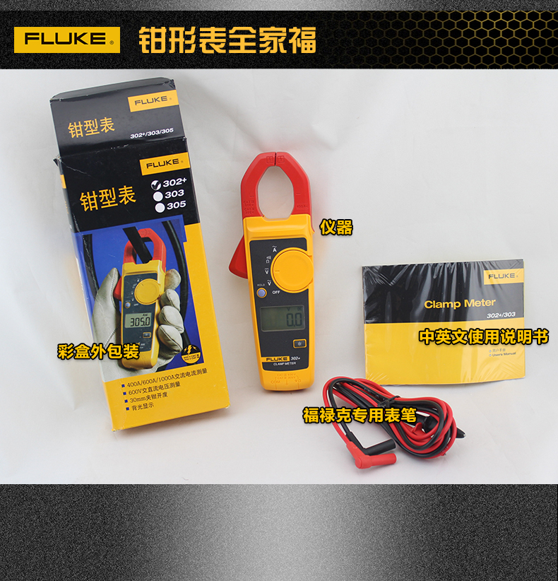 美国福禄克Fluke302+交流电流钳表 F302+数字交流钳形表 高精度