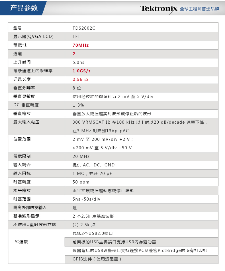 TEKTRONIX泰克70M双通道数字示波器TDS2002C