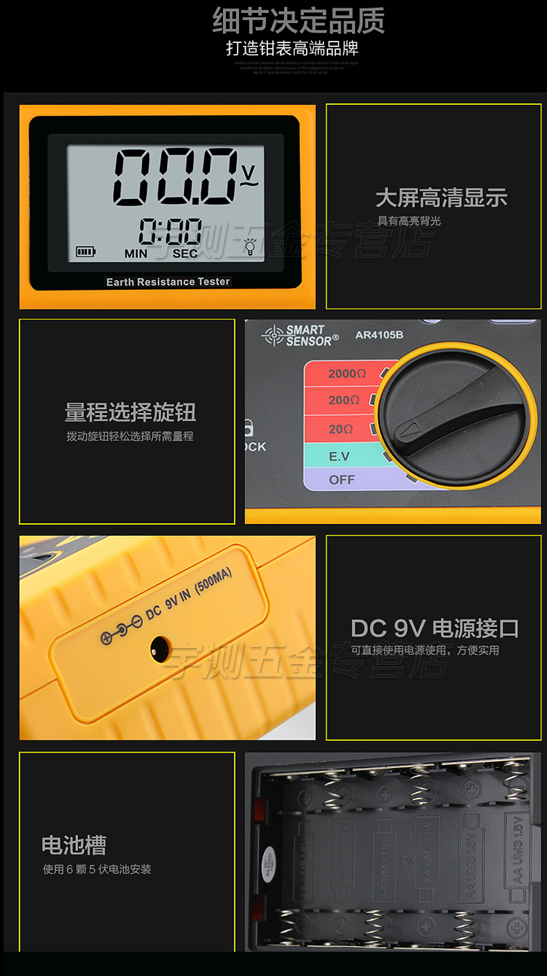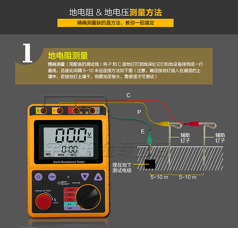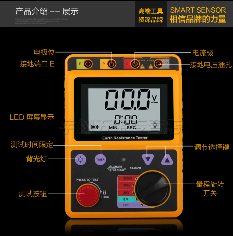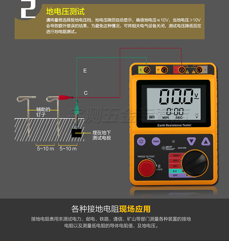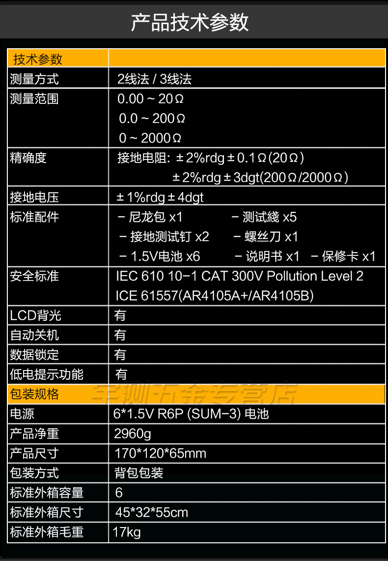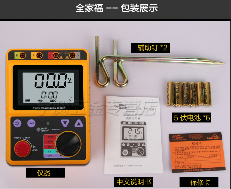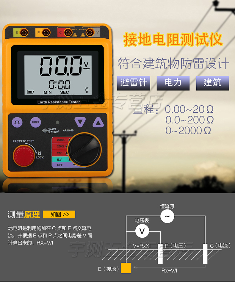 希玛AR4105B接地电阻检测仪接地电阻测试仪高精度接地电阻表数字