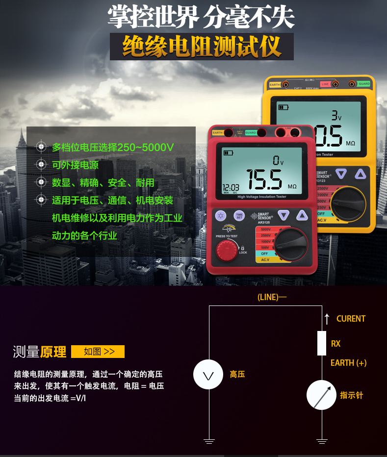 希玛AR3123 AR3125 绝缘电阻测试仪 数字兆欧表 绝缘电阻表