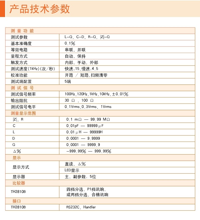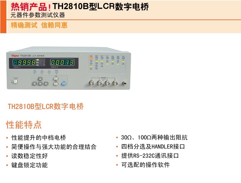同惠TH2810B型LCR数字电桥 电容电感电阻元器件参数测试仪器10kHz