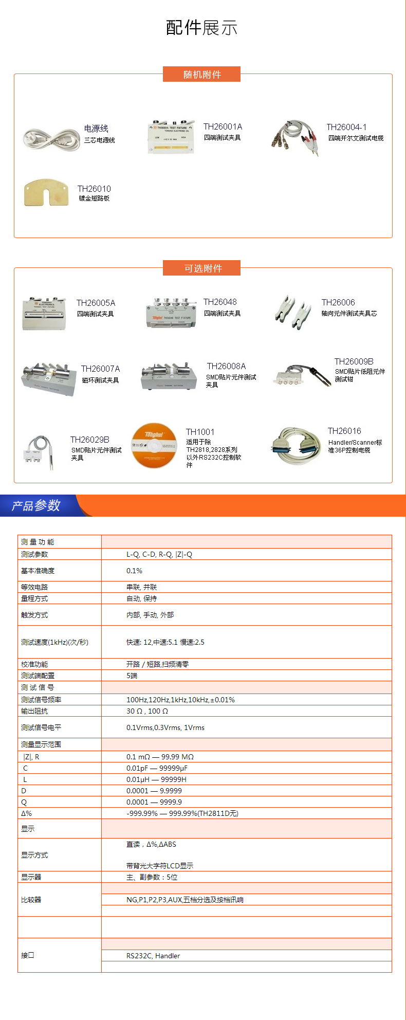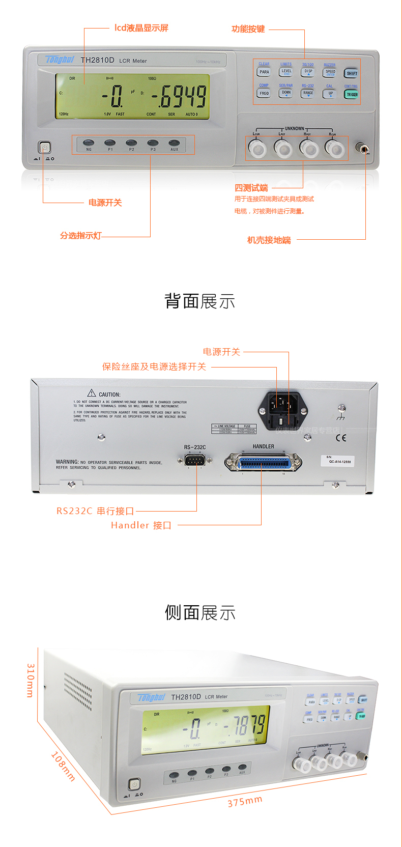 同惠LCR数字电桥TH2811D/TH2810D/TL2812D电桥测试仪 10KHz