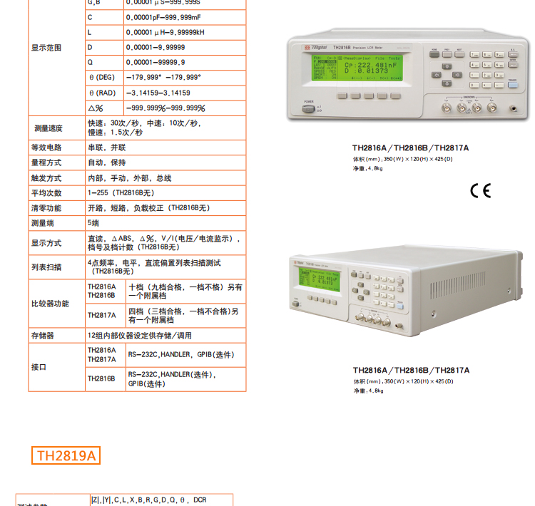 • 选择型号: TH2816BTH2819A