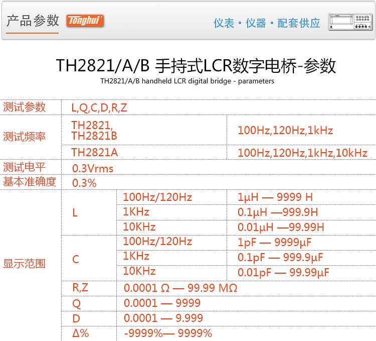 同惠电桥TH2821/TH2821B手持式lcr数字电桥TH2821A电感电容测量仪