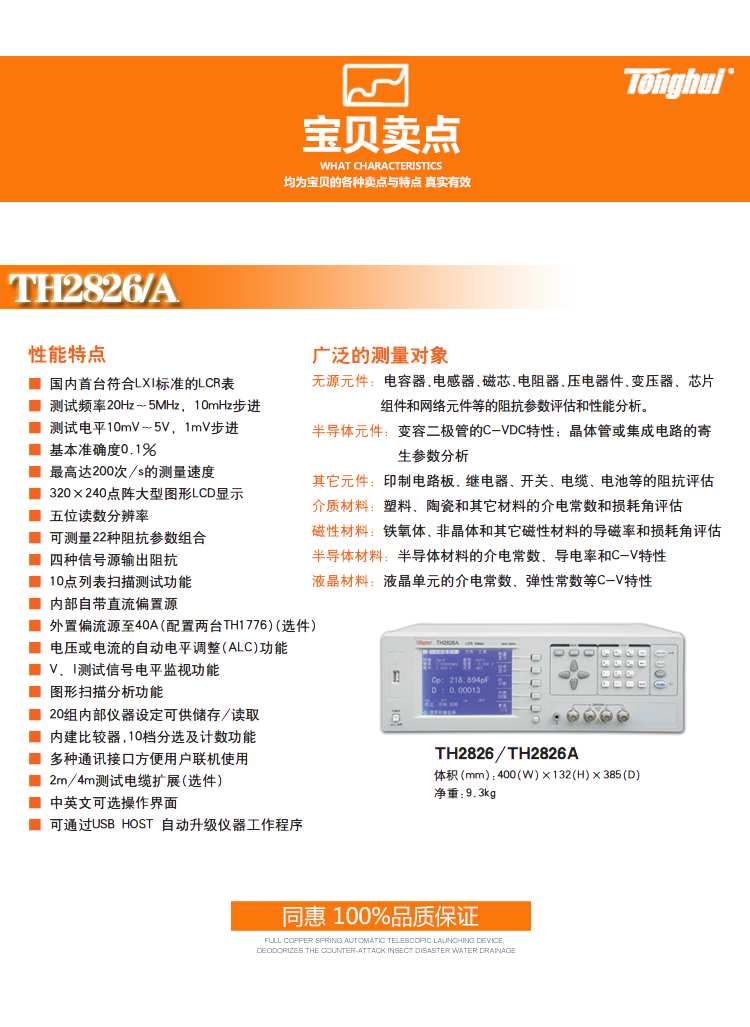 同惠TH2826 TH2826A高频LCR数字电桥元器件电参数测试仪5MHz