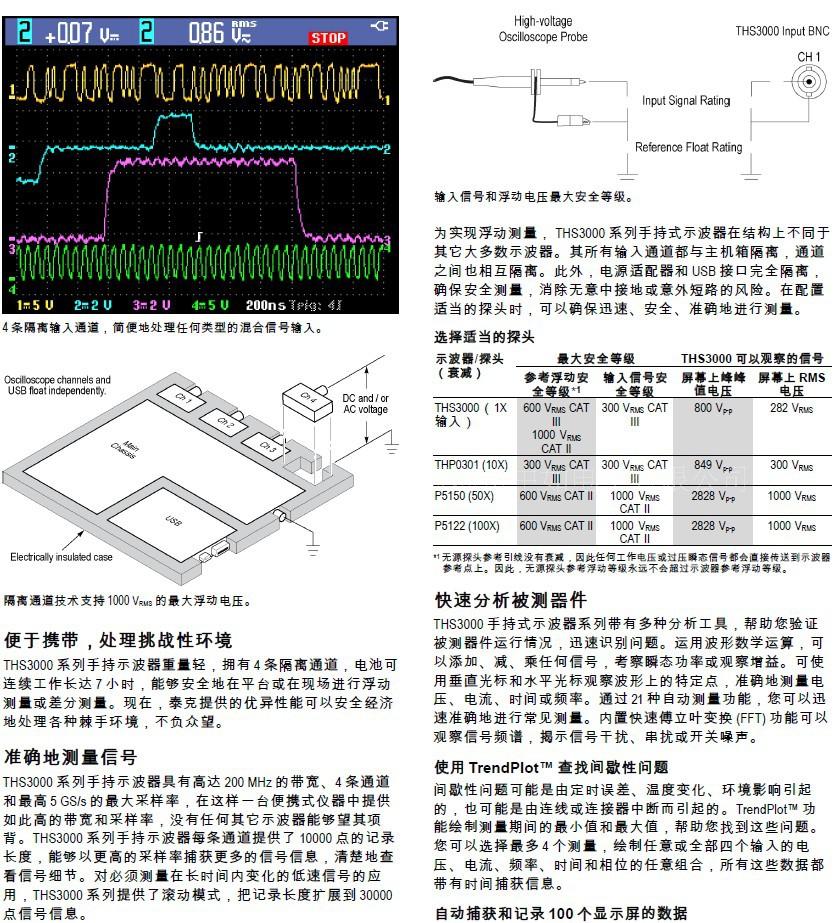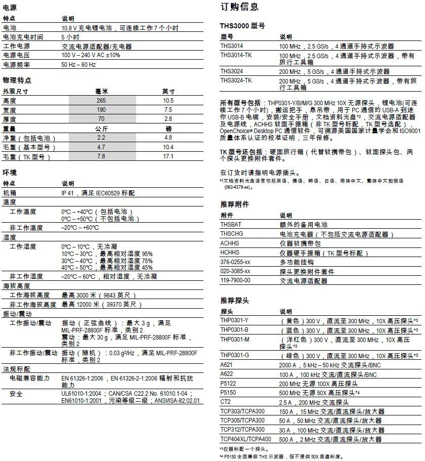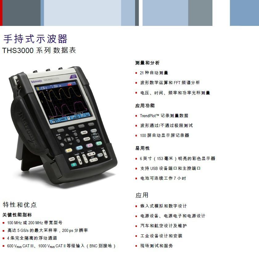 Tektronix泰克THS3024/THS3014手持式示波器4通道5GS/s采样率