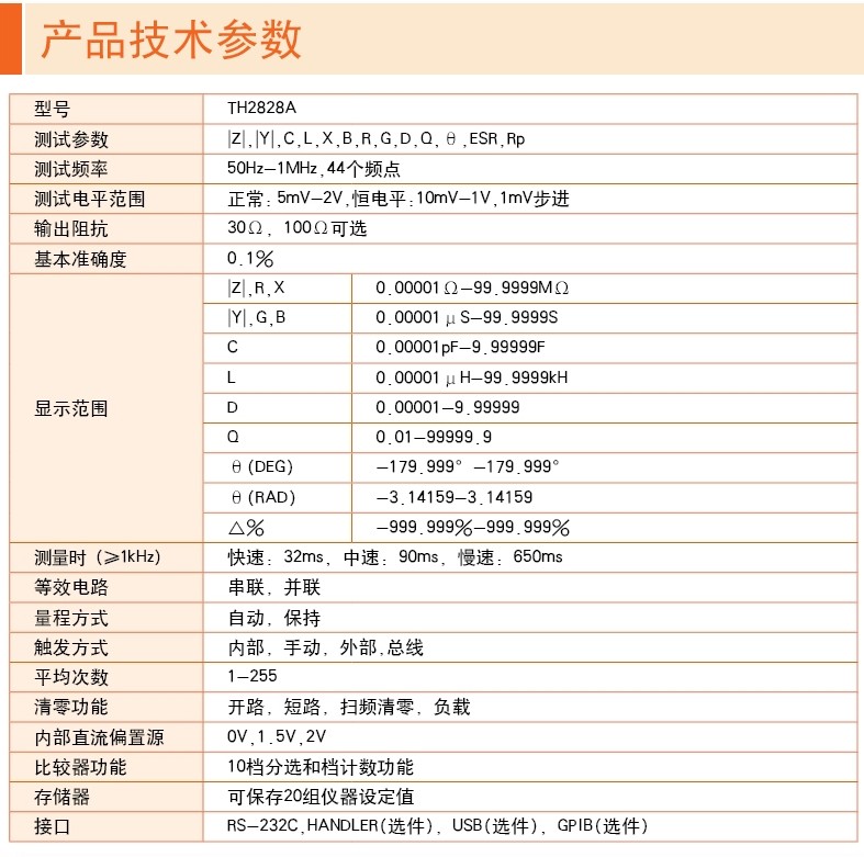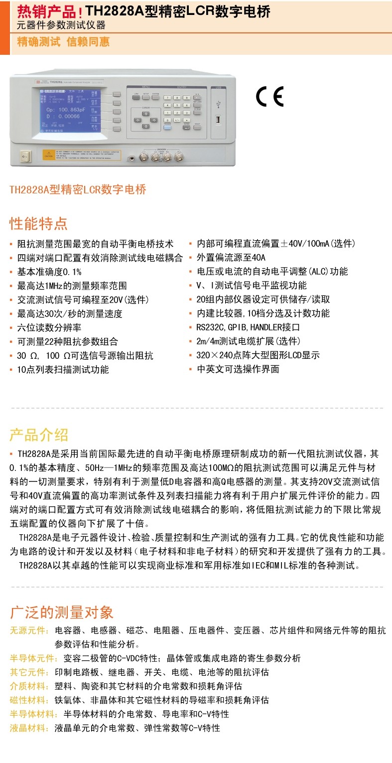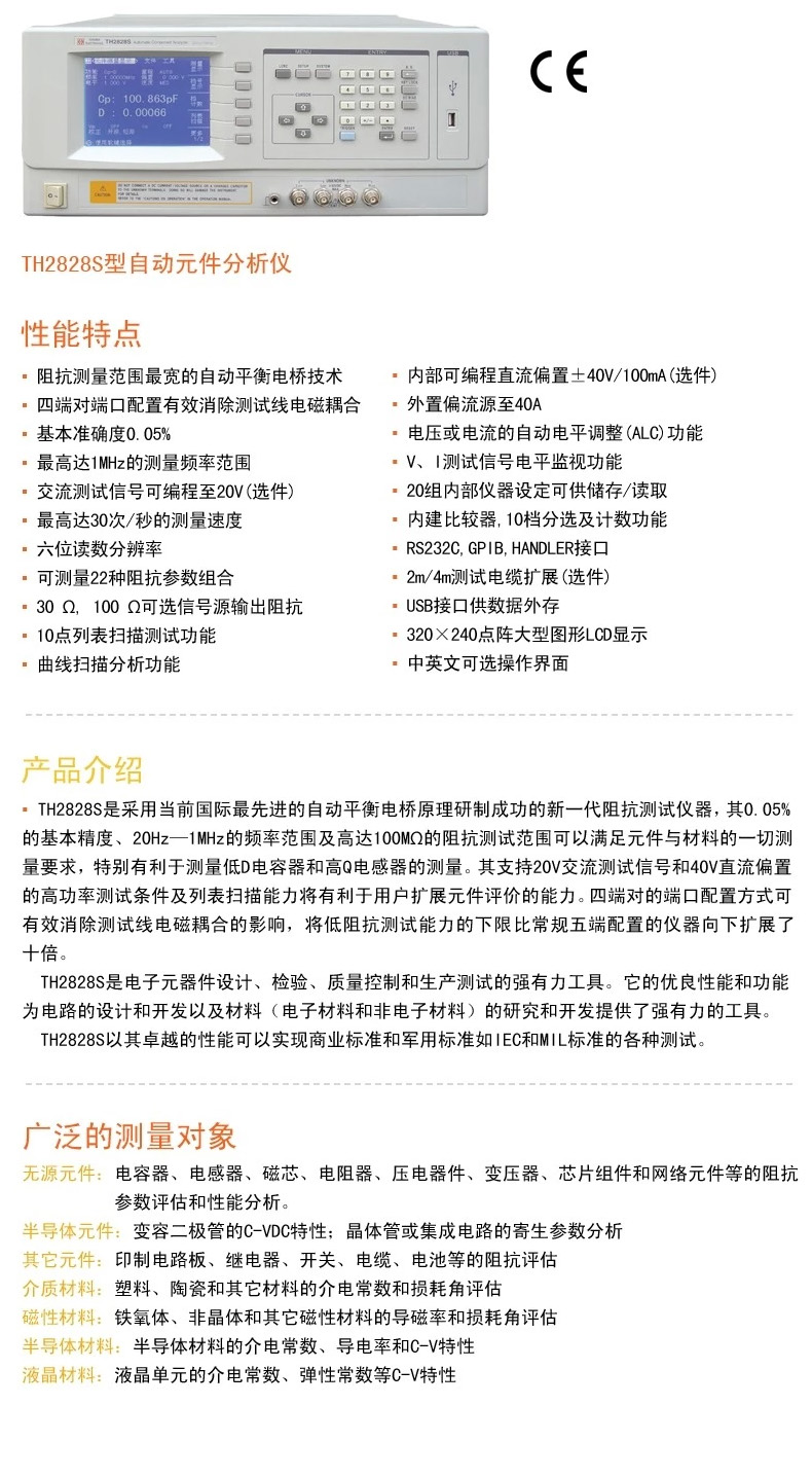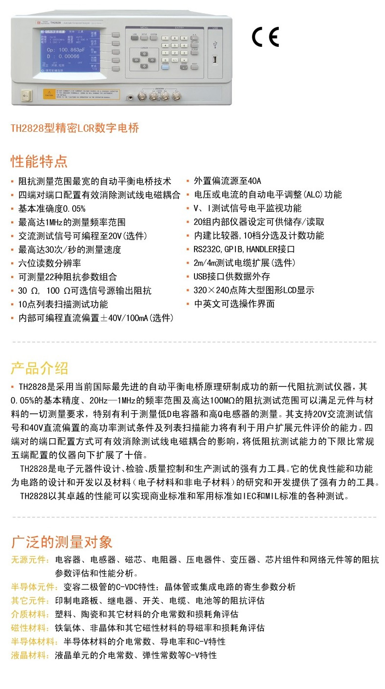同惠电桥TH2828/TH2828A/TH2828S元件分析仪LCR数字电桥测试仪