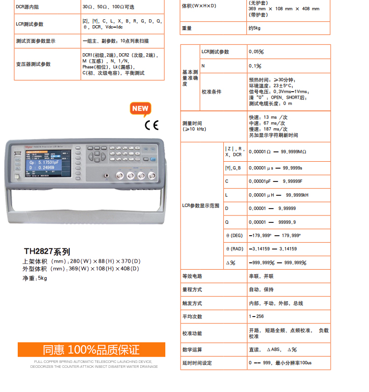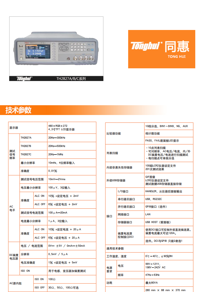 同惠TH2827A TH2827B TH2827C高频精密LCR数字电桥测试仪