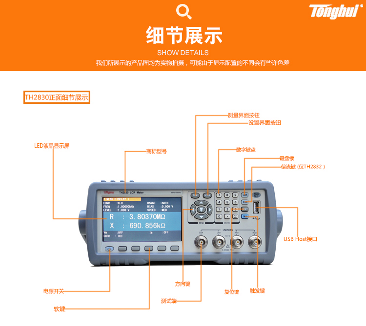 同惠TH2830/TH2831 LCR数字电桥测试仪高精度电容电感电阻测量仪TH2832
