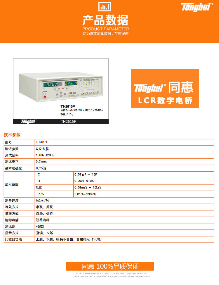 同惠TH2615F型高精度大电容测量仪器0.01μF-16F元器件参数