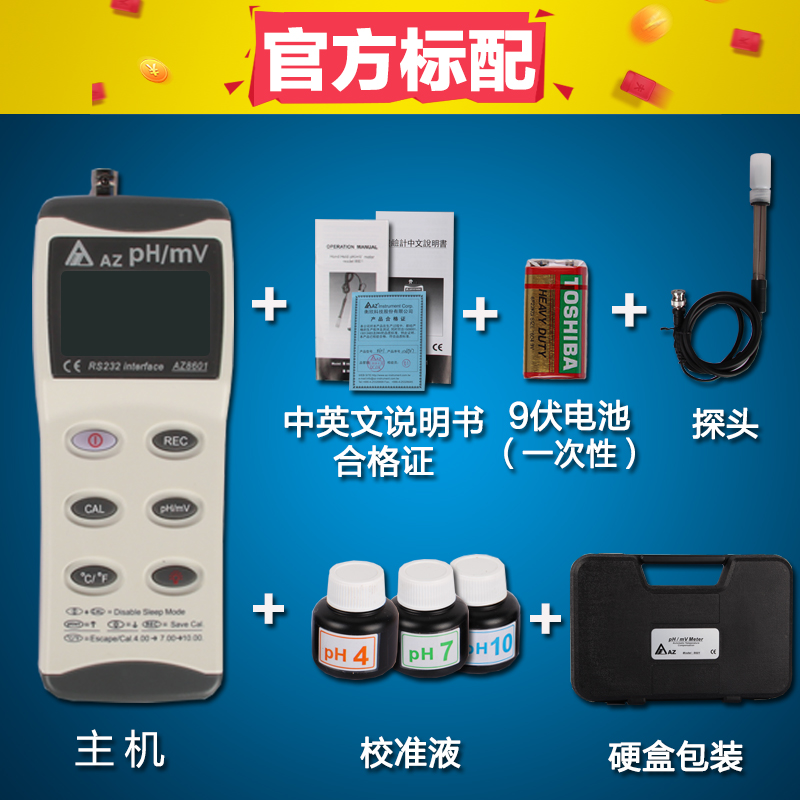 台湾衡欣记忆式PH水质分析仪带记录PH测试仪PH计 酸碱度计AZ9661