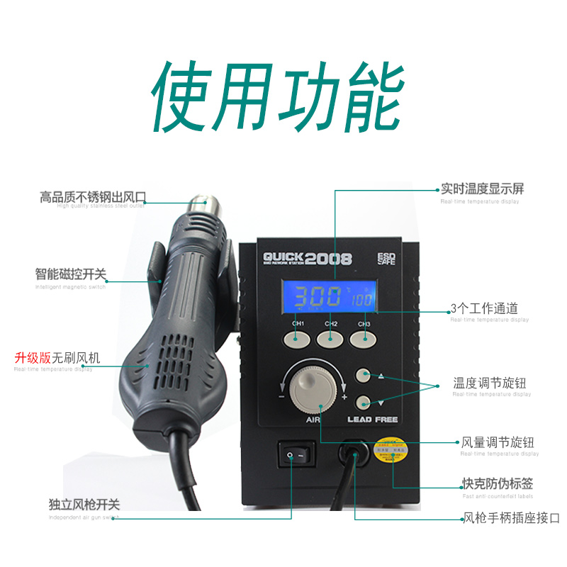 原装QUICK2008防静电热风枪无铅热风枪 快克2008 无刷风机
