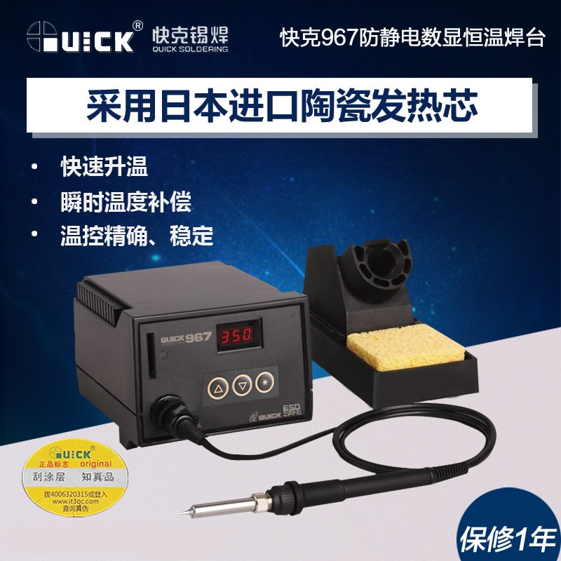 常州快克QUICK967E控温电焊台60W防静电数显控温烙铁480℃烙铁头