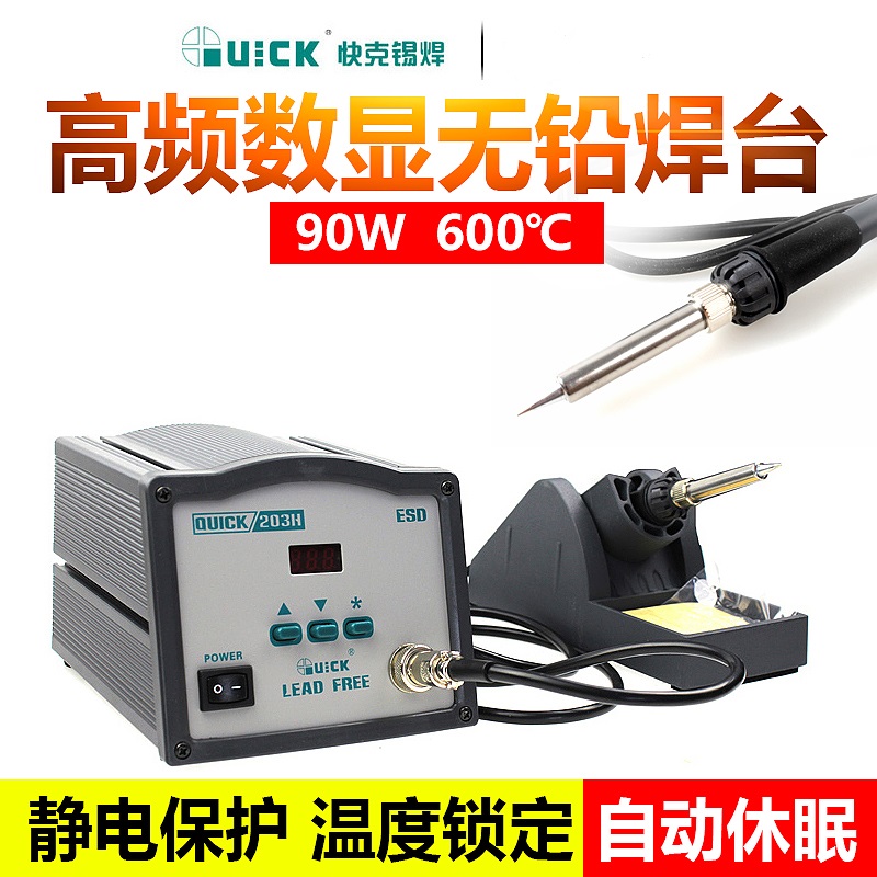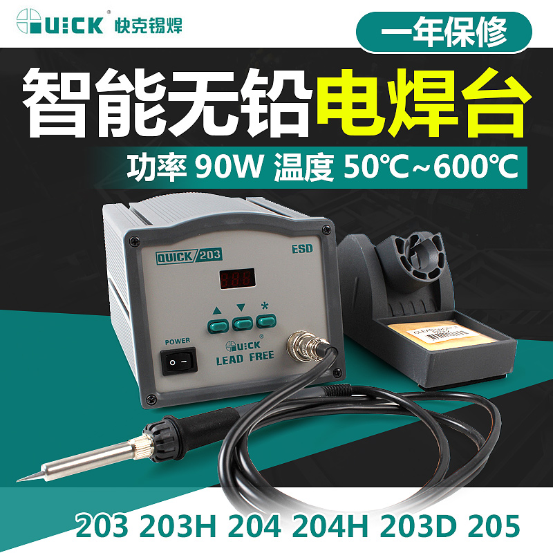 QUICK快克203H数显无铅高频恒温焊台90W大功率恒温烙铁204H电焊台