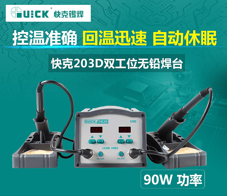 QUICK/快克智能无铅焊台QUICK 203D 功率90W*2 温度80℃~480℃
