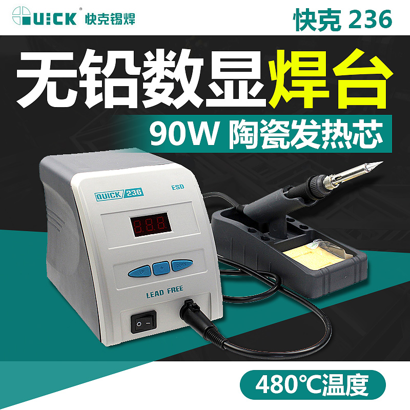 快克QUICK 236防静电无铅数显焊台90W进口发热芯高频电焊台电烙铁
